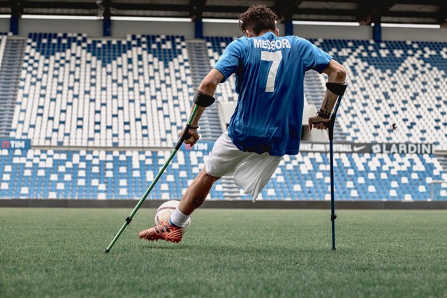 Ora qualche altro cenno biografico sulla protagonista dell’evento. Francesco Messori, per gli amici Messi, è il capitano della Nazionale di Calcio Amputati. Nato a Bologna nel 1998, fin da bambino ha mostrato una radicata propensione per il gioco del calcio. Non senza difficoltà: dalla nascita Francesco è infatti privo dell’arto inferiore destro. Significa che deve giocare indossando una protesi, oppure, come ha fatto quasi subito, con l’ausilio delle stampelle. Nel 2012 crea un gruppo su Facebook attraverso il quale lancia un appello: cerca calciatori “come lui”. Le risposte non si fanno attendere, le adesioni sono numerose. Francesco fonda la Nazionale di Calcio Amputati. La squadra partecipa al Campionato Mondiale nel 2014 e agli Europei nel 2017, qualificandosi per il Mondiale 2018.