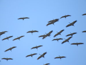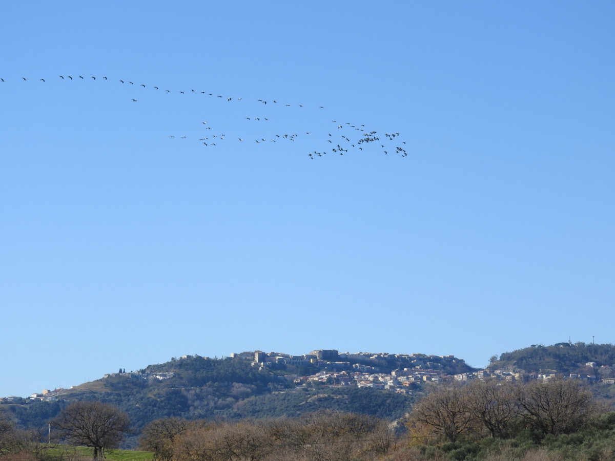 La fine di febbraio è il periodo in cui le Gru cenerine sorvolano i nostri cieli. Le Gru con il loro richiamo di contatto, annunciano l’arrivo della primavera. Le Gru che sono partite dal centro dell’Africa dove hanno trascorso l’inverno, ora sono dirette nella steppa Russa per riprodursi. Cirò Marina si trova sulla rotta migratoria di centinaia di specie di uccelli, ma l’emozione che provoca uno stormo di Gru, è ineguagliabile. Durante il viaggio migratorio, volano formando una V, cambiando posizione ogni tanto per evitare che gli uccelli che si trovano davanti si stanchino troppo.