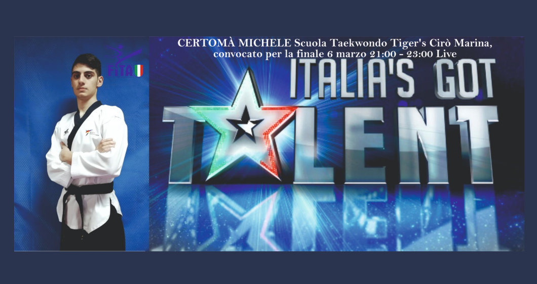 Il talento cirotano Michele Certomà della prestigiosa Scuola di Taekwondo Tiger’s di Cirò Marina diretta dal M° Natalino Martino, affiliata alla Federazione italiana taekwondo F.I.TA. è stato convocato dal Commissario Tecnico della Nazionale Italiana di Taekwondo Andrea Notaro, per prendere parte alla finale della nuova edizione del noto talent show televisivo in onda su Sky Uno e TV8, che si disputerà il 06/ Marzo a partire dalle 21.