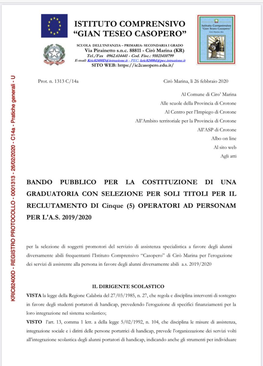 Con la pubblicazione dei bandi per il reclutamento di operatori ad personam presso gli Istituti Scolastici, si è dato voce alle tante richieste dei genitori di bambini che necessitano di assistenza.
