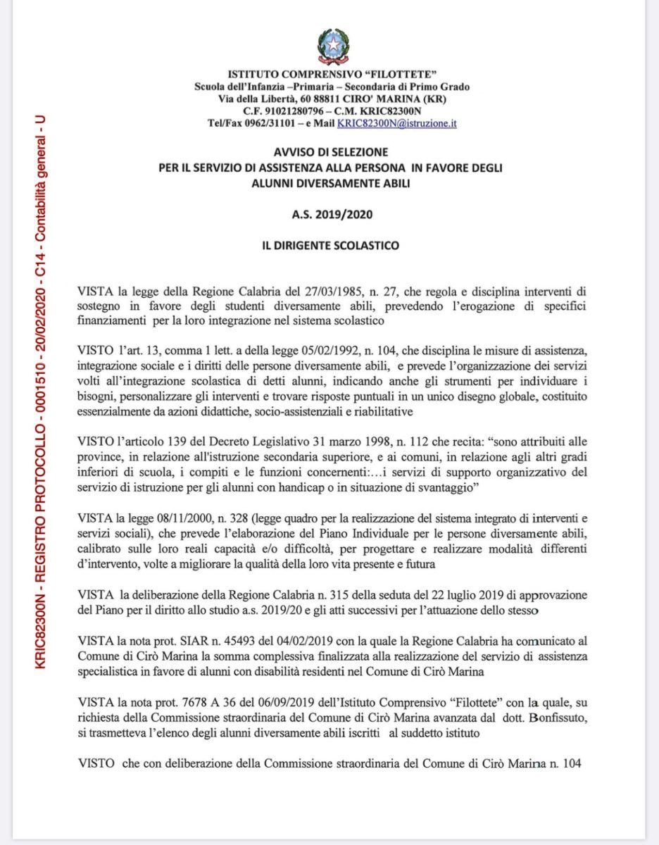 Apprendiamo con soddisfazione dall’albo pretorio del Comune di Cirò Marina, che uno dei punti trattati in un incontro di Ottobre 2019 con i Commissari Prefettizi, finalmente è stato messo in atto.