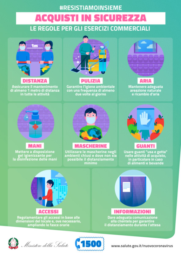 Nella cosiddetta “fase 2” gli esercizi commerciali la cui attività non è sospesa, al fine di limitare e contrastare la circolazione del nuovo coronavirus e garantire acquisti in sicurezza, devono rispettare le seguenti misure di igiene e prevenzione previste dal decreto del 26 aprile.