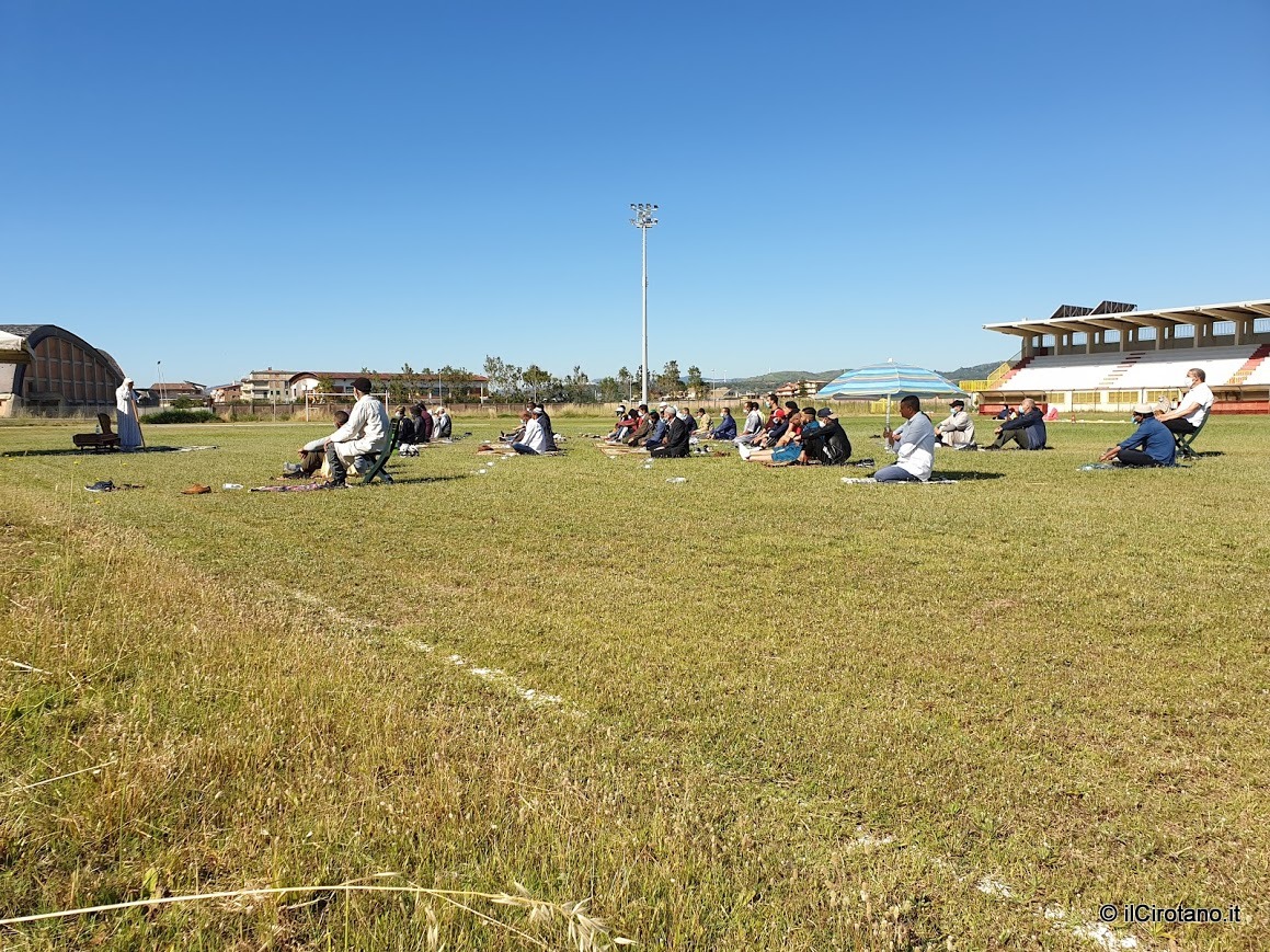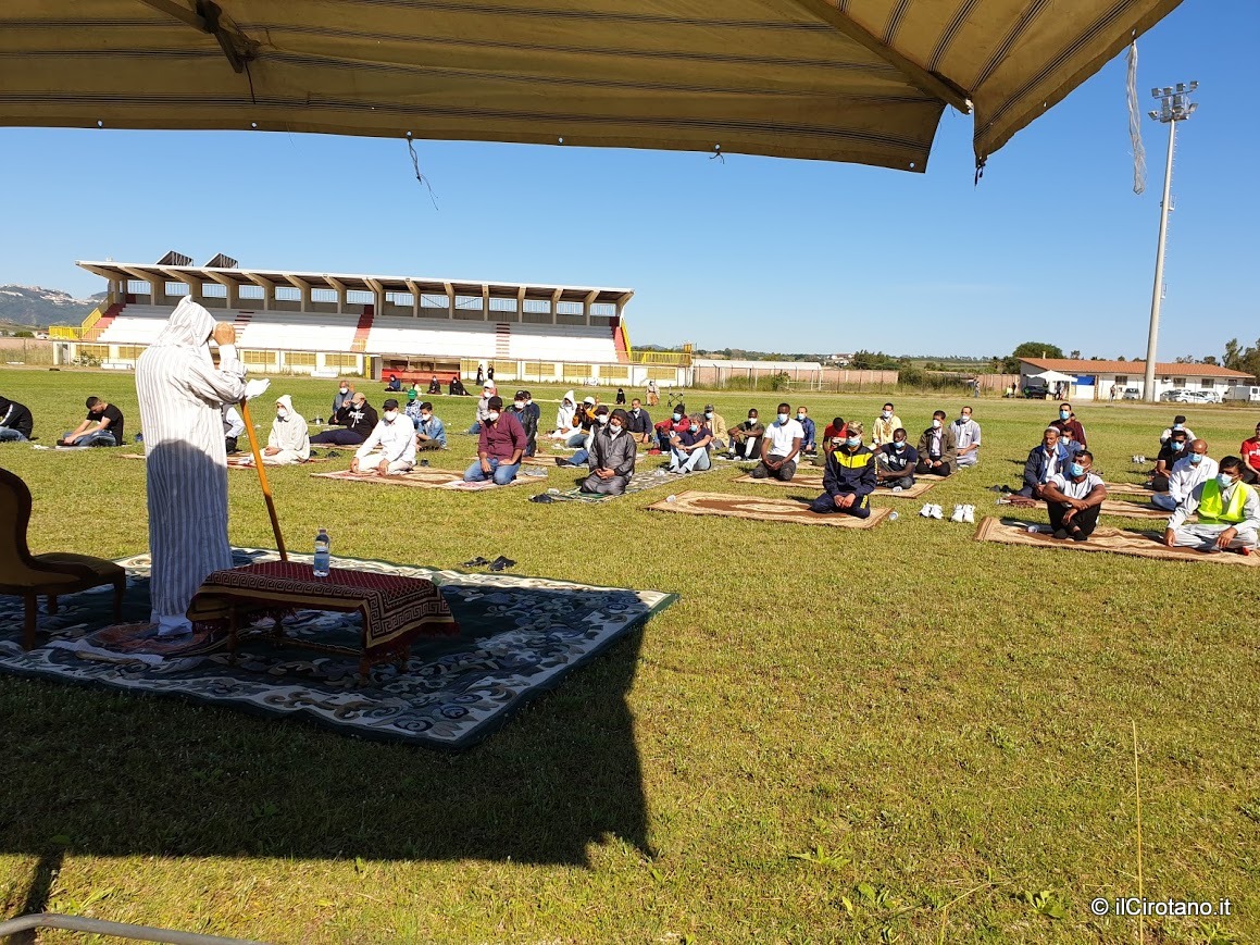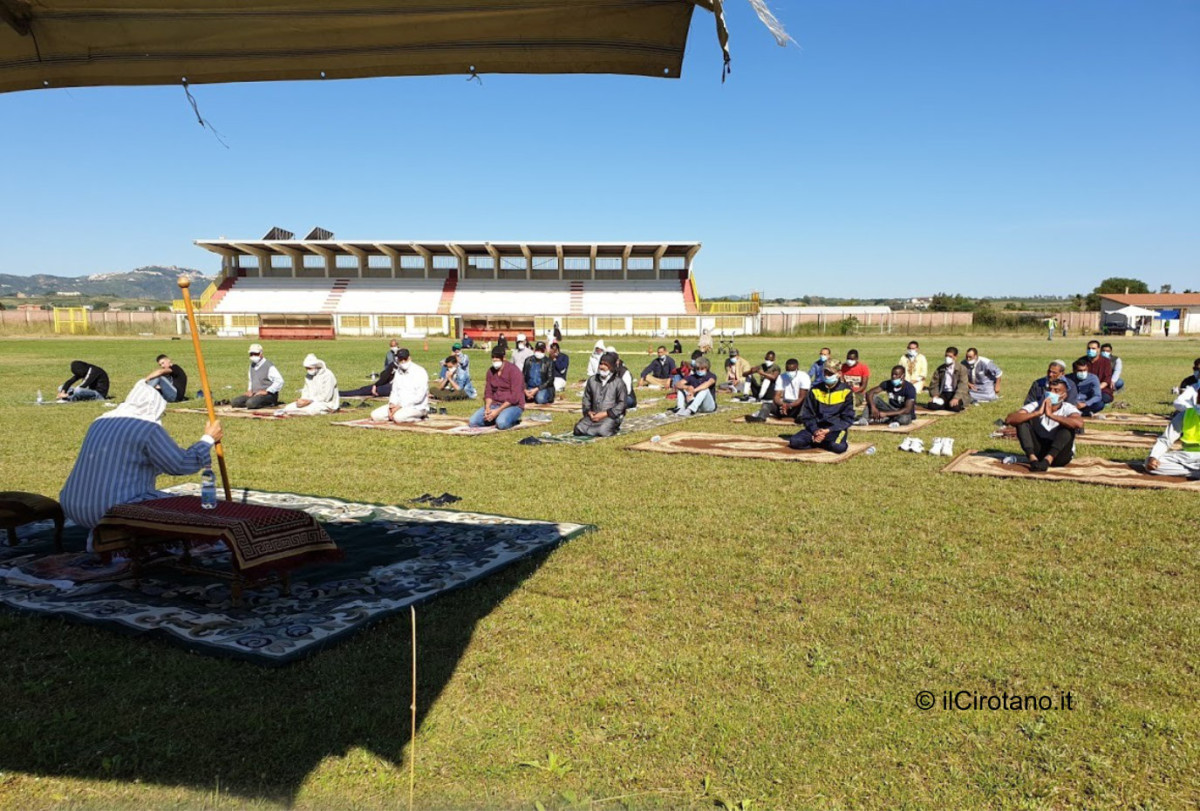 Oggi 24 maggio 2020, quindi, ricorre la festa di Eid al-fitr, che segna la fine del mese sacro del Ramadan. La comunità di Cirò Marina e dei paesi limitrofi si sono riuniti in preghiera per l’Aid (festa di fine Ramadan) nello Stadio di Cirò Marina, dove è stata predisposta l’accoglienza di circa 60 fedeli, uomini donne e bambini, insieme all’Imam, secondo le prescrizioni di sicurezza legate alla prevenzione del contagio dovute al Coronavirus, avendo cura di indossare le mascherine e rispettando la distanza di sicurezza.