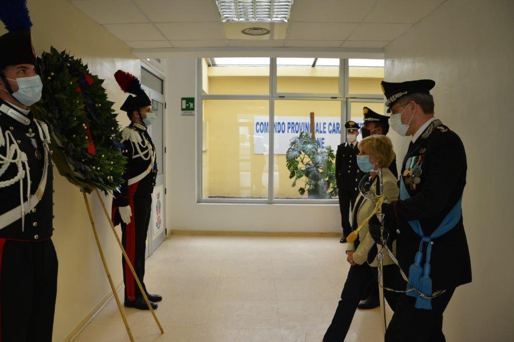 Nella mattinata di oggi anche a Crotone i Carabinieri festeggiano i 206 anni di storia e, in armonia con le disposizioni governative e tenuto conto della contingente situazione sanitaria nazionale, è stata tenuta una sobria cerimonia militare all’interno del Comando Provinciale, nel corso della quale è stata deposta una corona d’alloro presso la targa, in onore dei Caduti, presente all’interno della Caserma, a cura del Comandante Provinciale, Ten. Col. Alessandro Colella e di S.E. il Prefetto di Crotone Dott.ssa Tiziana Tombesi.