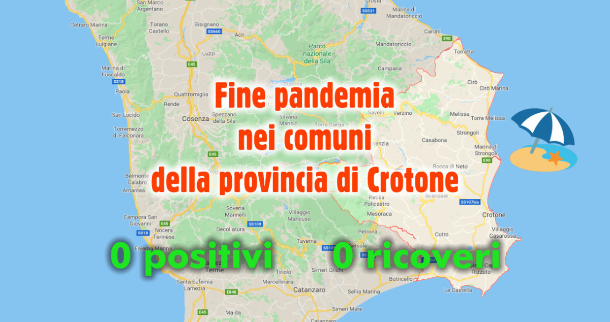 È pervenuta ufficialmente la notizia che nel territorio della provincia di Crotone non sono più presenti soggetti positivi al virus COVID-19.