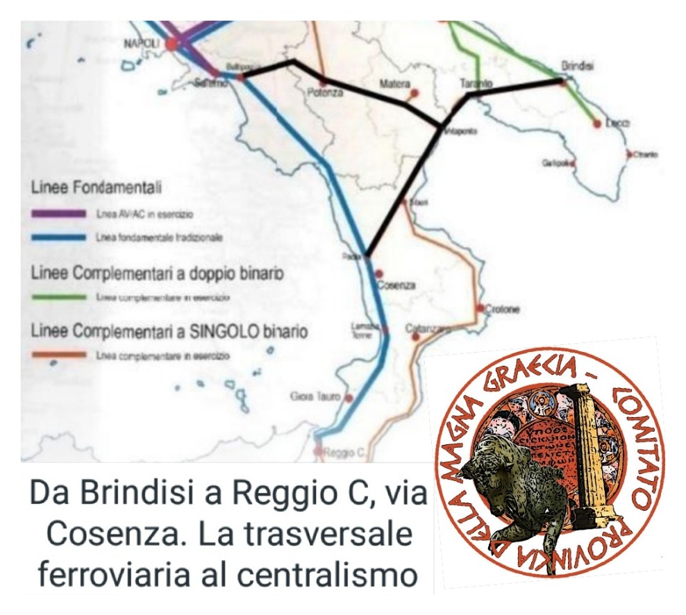Persevera la visuale centralista già vista sulla statale 106 dove, allo stato, i 38 km del 3°megalotto rappresentano solo il collettore Jonico agli interessi tirrenico-Adriatici. Non una sola parola sulla connessione alla linea ferrata, dei due porti di Crotone e Corigliano Rossano, che continuano a rimanere delle cenerentole abbandonate, rimanendo fuori dai giochi, giacendo entrambi a sud di Sibari. Non una parola tra un eventuale servizio metropolitano leggero, un sorta di HUB ferroviario che potrebbe essere previsto a Sibari e relativa connessione con Corigliano Rossano e Crotone nonché aeroporto Sant’Anna e lo scalo “Magna Graecia di Grottaglie”. Nessun riferimento alla “lunetta di scambio” nell’ex posto movimento di Thurio, che permetterebbe un deviatoio verso la Sibari-Paola, bypassando il cambio banco a Sibari. Parimenti su Metaponto, con la predisposizione della biforcazione nella stazione di Policoro-Tursi, verso Potenza-Battipaglia-Salerno.