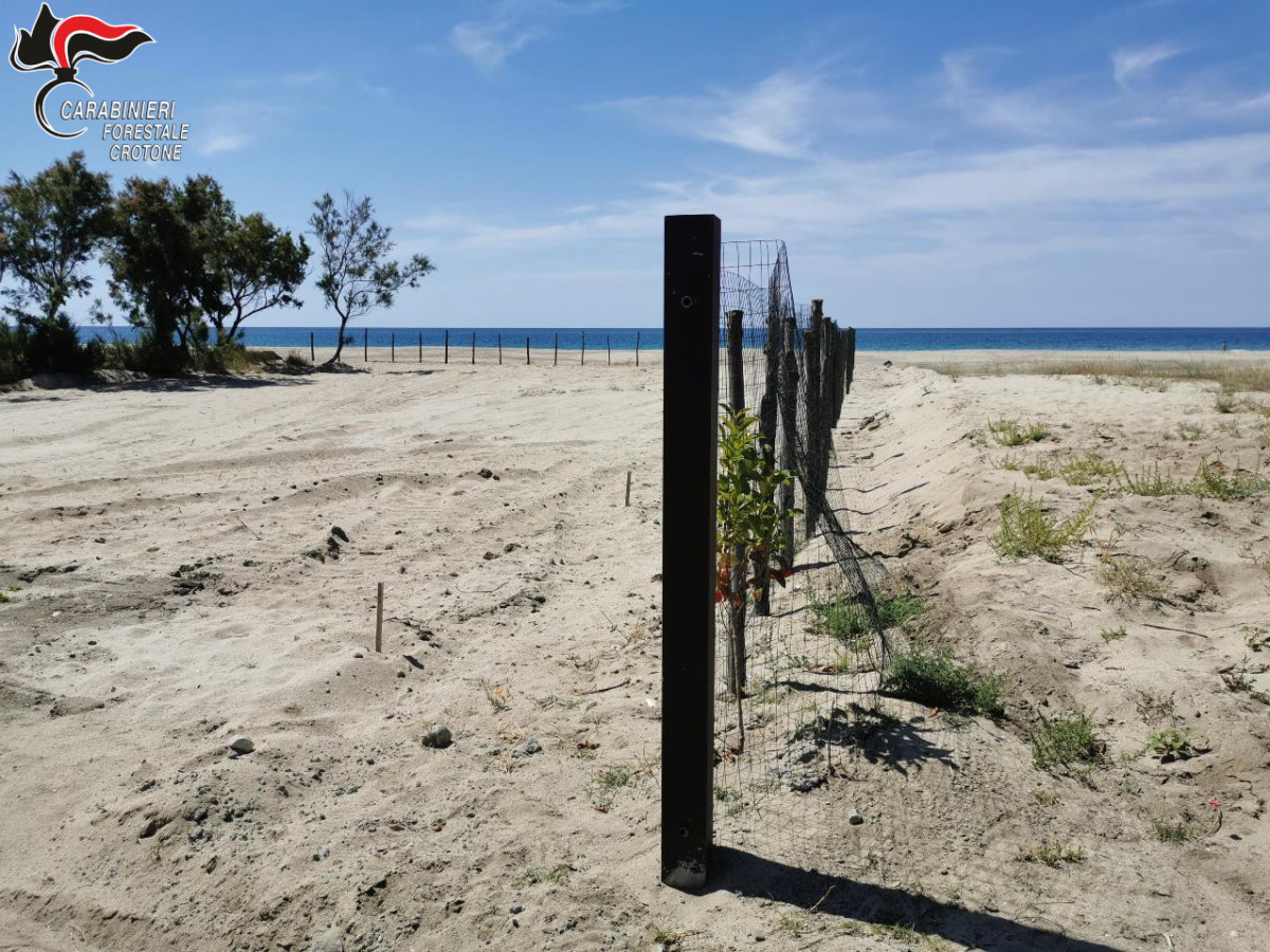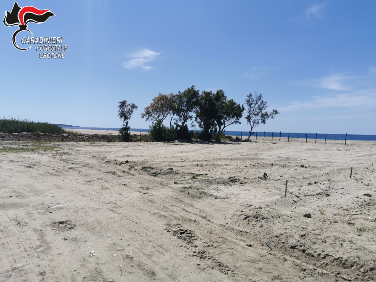 In seguito ad una segnalazione pervenuta i militari delle stazioni Crotone e di Petilia Policastro sono intervenuti per verificare la regolarità di alcuni lavori eseguiti in prossimità della linea di costa. Gli accertamenti eseguiti sul luogo e presso l’Area urbanistica del comune di Cutro, competente per la vigilanza dell’attività urbanistica – edilizia nel territorio, hanno evidenziato che i lavori erano privi di atti legittimanti l’esecuzione. È stato verificato che su un’area di circa 3.500 m2 è stato eseguito uno spianamento, eliminando completamente alcune dune litoranee, distruggendo tutta la vegetazione tipica esistente.