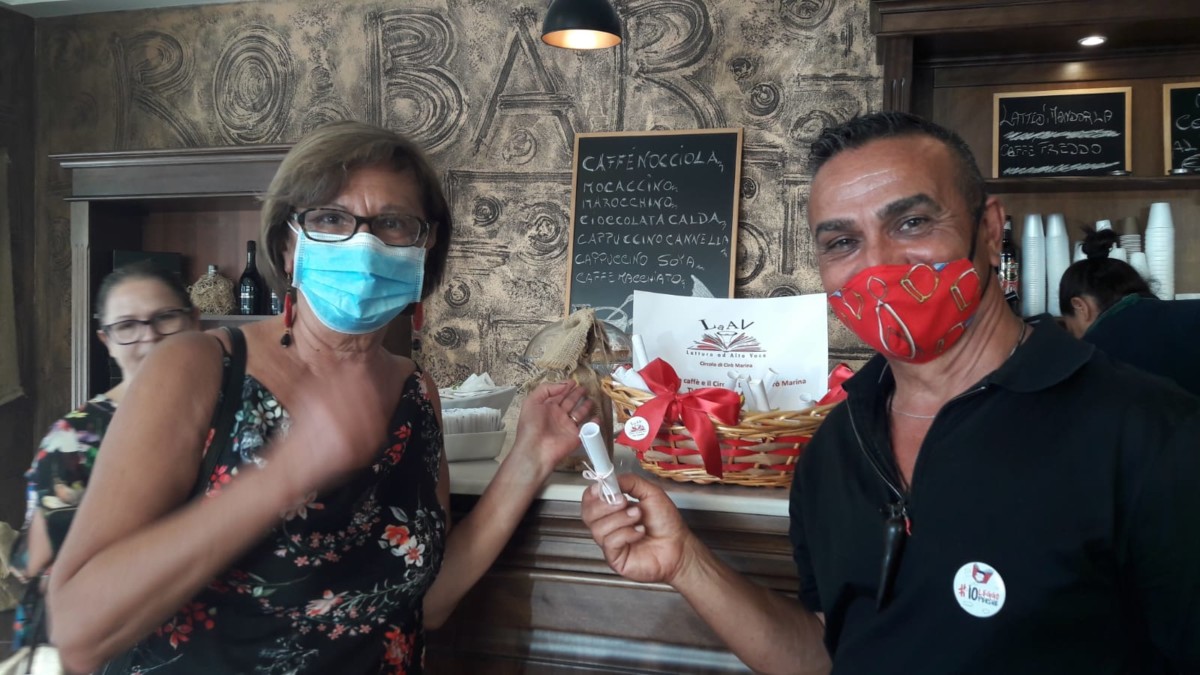 Questa l’iniziativa del circolo  LaAV di Cirò Marina, guidata da Candida De Marco, che  ha regalato nelle giornate di venerdì 24 e sabato 25 Luglio un  “cesto poetico” ai bar e pasticcerie della città.  È stato consegnato ai gestori  che, con entusiasmo  e con piacere, hanno aderito all’iniziativa proposta dal Circolo. LiliusCafè, Pasticciaccio, Torrefazione, Lagust, Delizie Del Celiaco, La Fenice, il Cremino ,Reale, Niagara ,Santa Lucia, questi i locali che gentilmente hanno accolto l’iniziativa. “Alcuni giovani, emozionati, hanno letto le poesie scelte e si sono complimentati con le lettrici presenti per il gentile pensiero, altri hanno applaudito l’iniziativa e hanno chiesto che venga ripetuta più volte, perché la cultura va difesa promulgata e regalata”, come ci ha riferito Candida De Marco, per tutti Dina. Ma l’iniziativa proseguirà, come ci ha sempre riferito  Dina De Marco, anche nel mese di agosto laddove il circolo si è proposto  di regalare poesie nell’ora dell’aperitivo e, questa volta la tematica  sarà: “Il cibo e i nostri prodotti” un percorso mare in Calabria con poesie anche in vernacolo. Tema del prossimo sarà:  “gusta il tuo drink e ti regaliamo una poesia”.  I volontari della LaAV  non si sono fermati in questo periodo di chiusura, anzi hanno mantenuto una certa continuità  con la promozione della lettura ad alta voce, obiettivo primario dell’Associazione. Hanno partecipato a tutte le iniziative proposte dal Nazionale tramite web proponendo video letture e letture audio a Radio LaAV per il progetto: Leggere Forte!  nato  sotto la direzione del Prof Federico Batini e Universita’ di Perugia. Dna De Marco ha infine voluto ricordare che “ LaAV è nel nostro territori da molti anni e oltre alla promozione della lettura organizza eventi e servizi di volontariato per chi ama ascoltare leggere e condividere. La LaAV è presente oltre che nelle scuole anche in luoghi difficile dove portare momenti di spensieratezza è molto importante.” Da quest’anno, la LaAV  ha un nuovo coordinatore,  Salvatore Papaianni. Si pensa e spera che grande entusiasmo riseverà anche questa seconda iniziativa estiva.