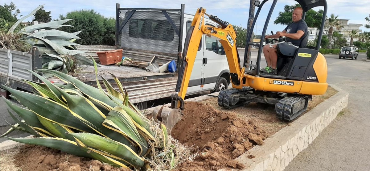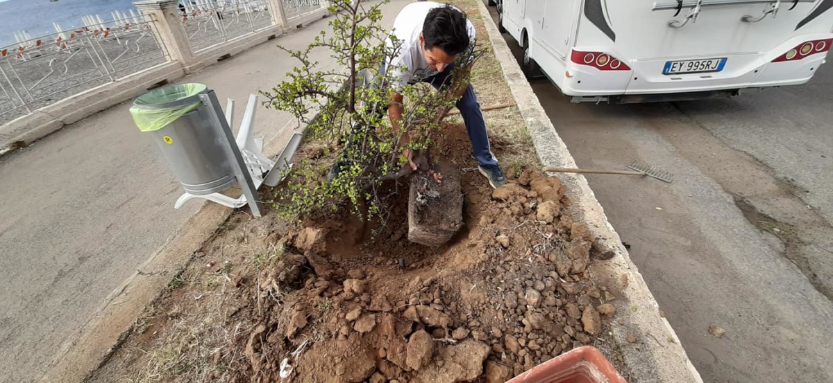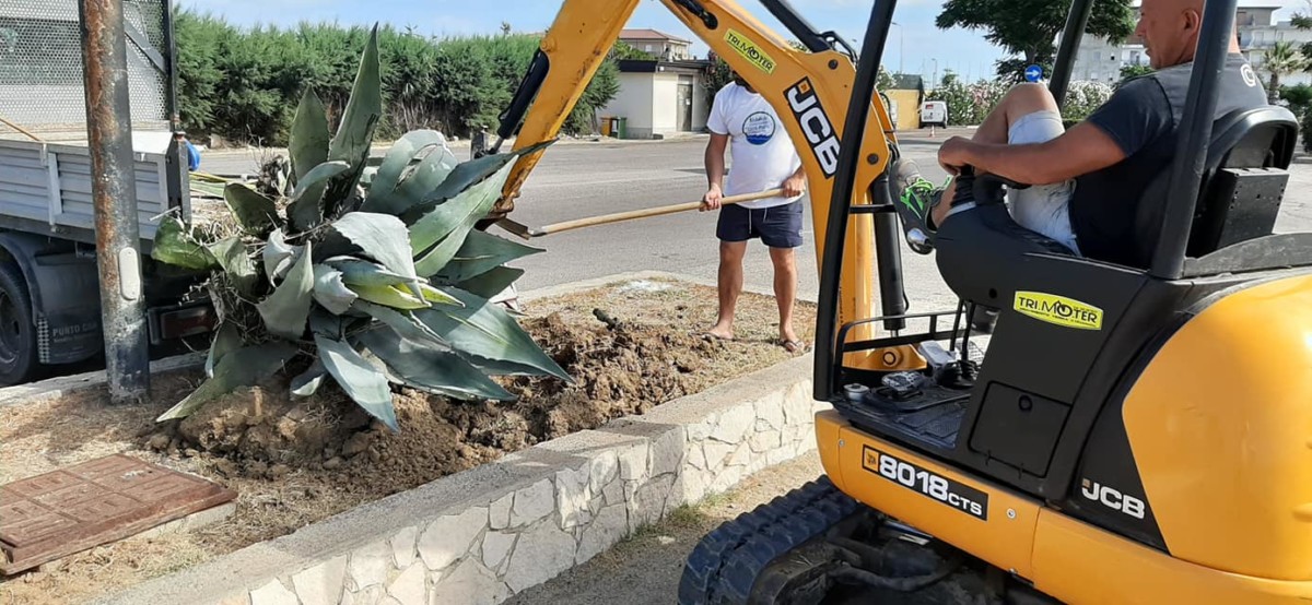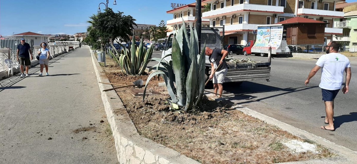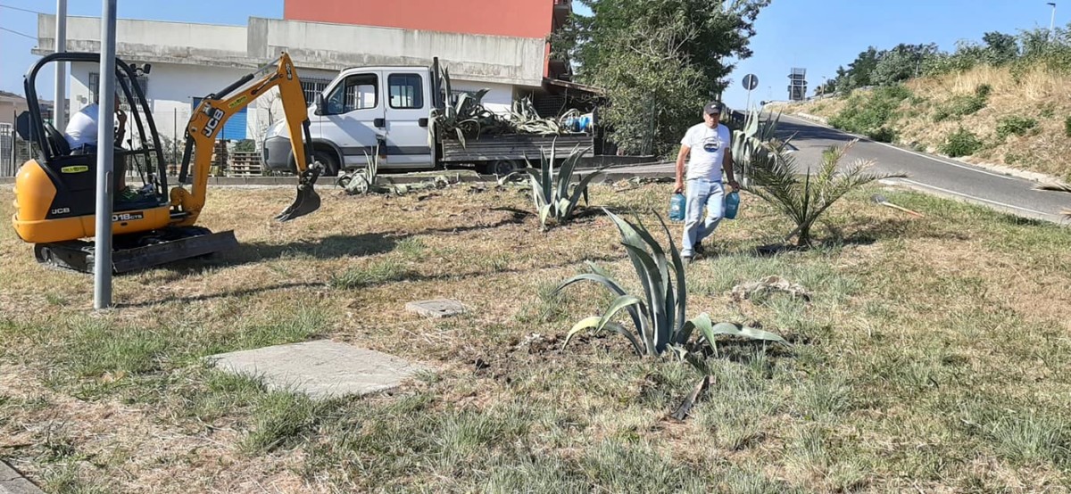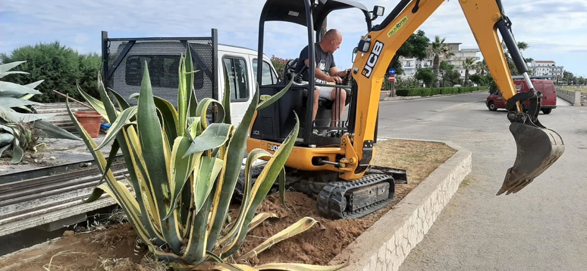Nell’ultimo mese sono state piantate numerose agave americane e variegate, cicas, crassule, agave attenuata, palma phoenix e aloe saponara, in aree del tutto prive di piante come l’ingresso sud del Paese, l’ultimo tratto del lungomare Nord ed inseriti vari vasi sui alcuni marciapiedi.