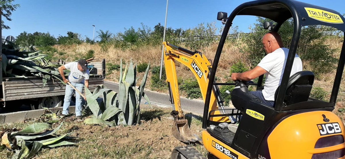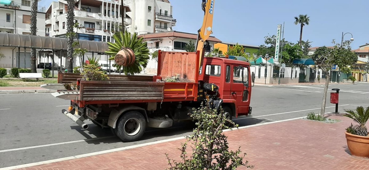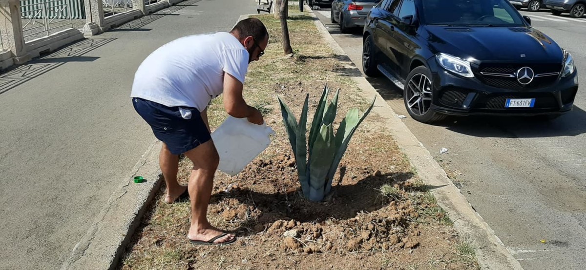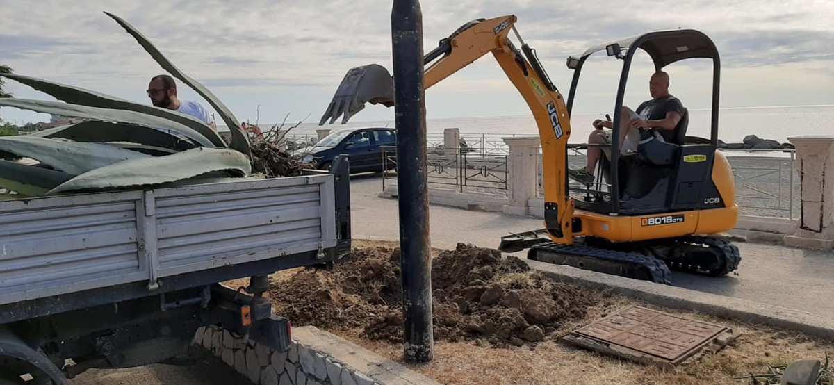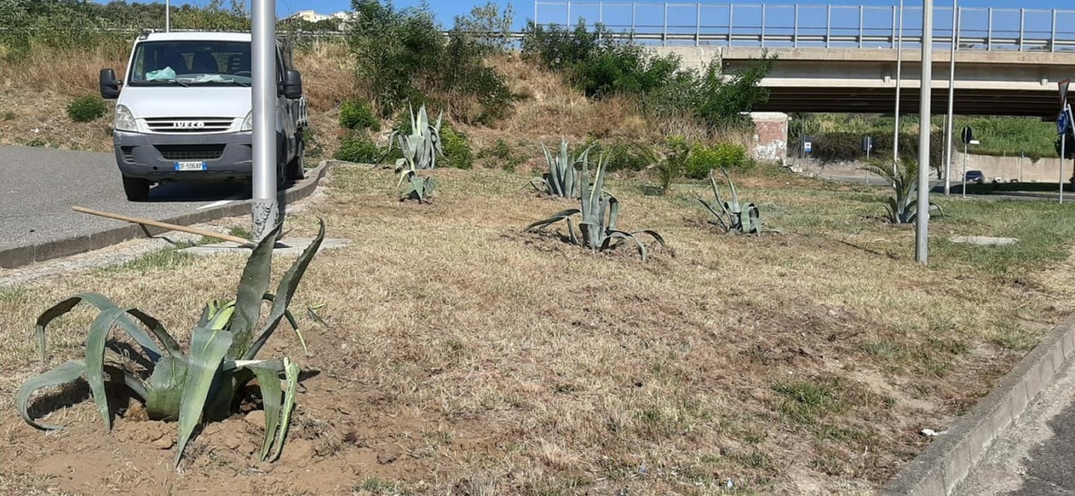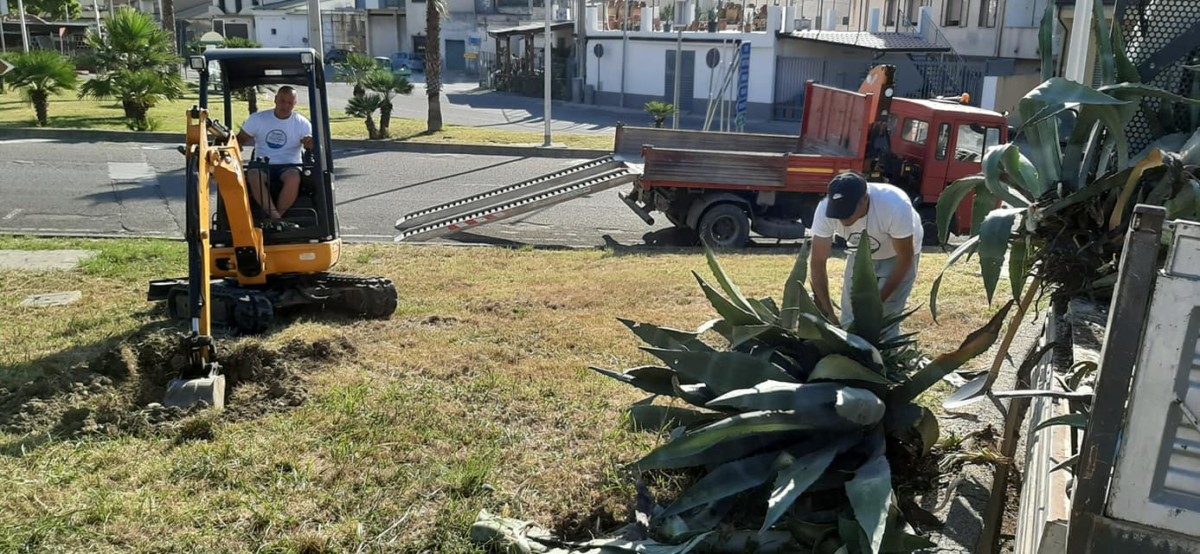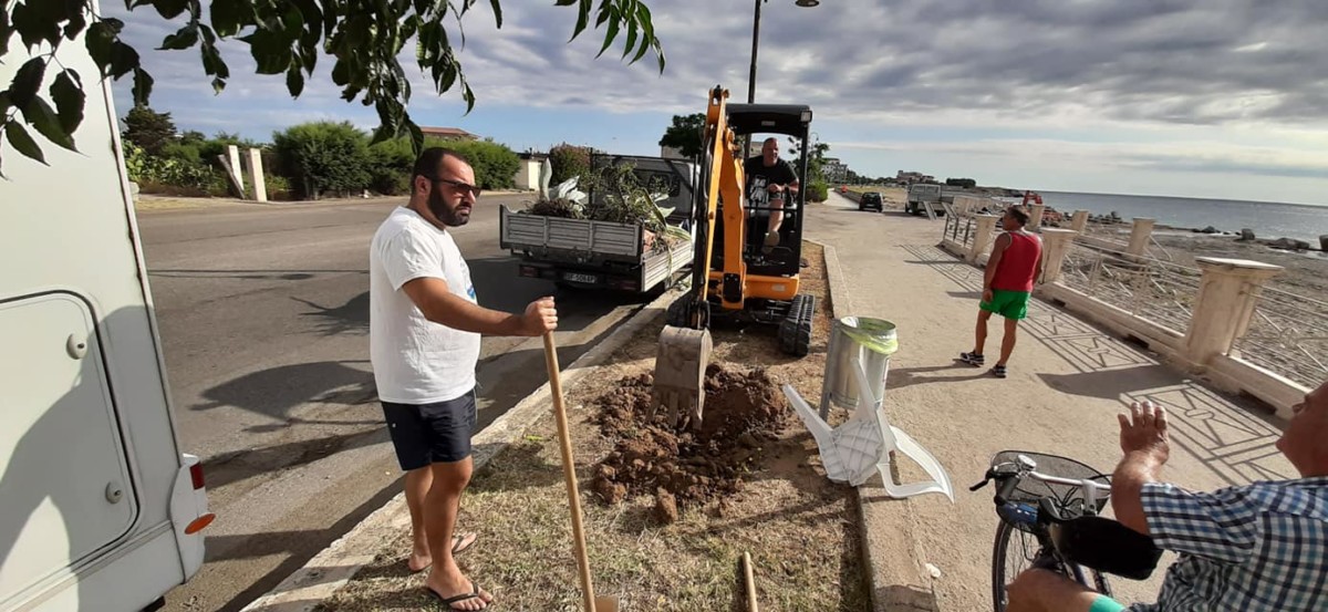 Nell’ultimo mese sono state piantate numerose agave americane e variegate, cicas, crassule, agave attenuata, palma phoenix e aloe saponara, in aree del tutto prive di piante come l’ingresso sud del Paese, l’ultimo tratto del lungomare Nord ed inseriti vari vasi sui alcuni marciapiedi.