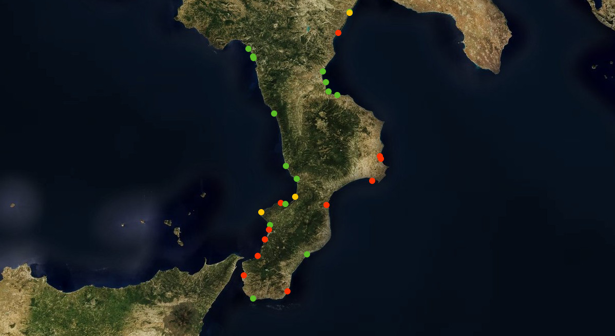 In Calabria sono stati 6 i punti monitorati in provincia di Cosenza, tutti risultati entro i limiti di legge. Si tratta del punto sulla spiaggia di fronte al canale del pescatore a Villapiana Lido; del punto sulla foce del Crati in località Laghi di Sibari, nel Comune di Cassano Jonio; del punto sulla spiaggia di fronte al torrente Coriglianeto in località Marina di Schiavonea a Corigliano Calabro; di un punto sulla spiaggia di fronte la foce del torrente Colognati a Marina di Rossano; di un punto sempre sulla spiaggia presso la foce del fiume Bagni, al confine tra i territori comunali di Acquappesa e Guardia Piemontese e infine su un punto sulla spiaggia presso la foce del Noce a Tortora Marina.