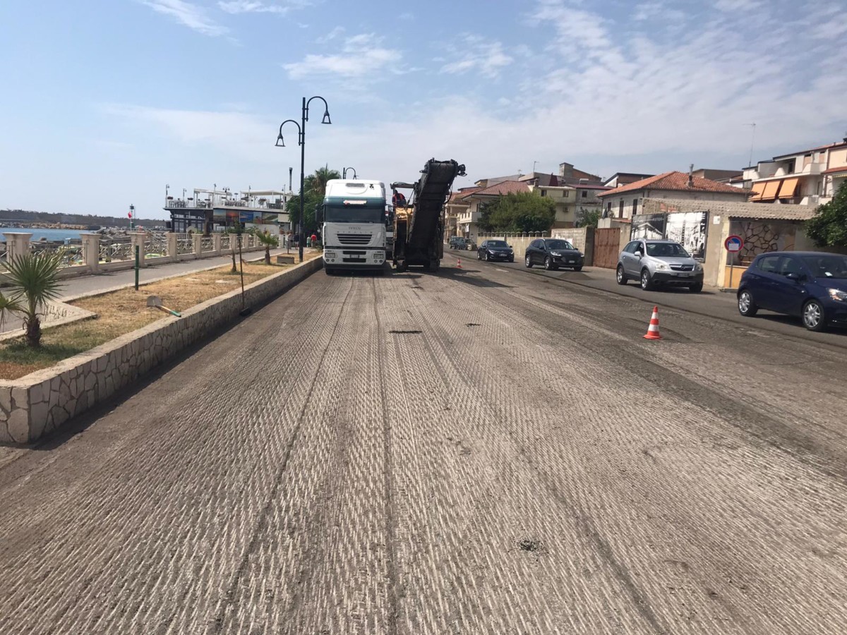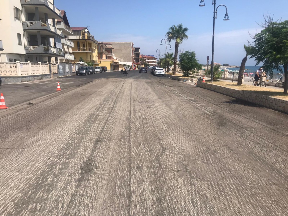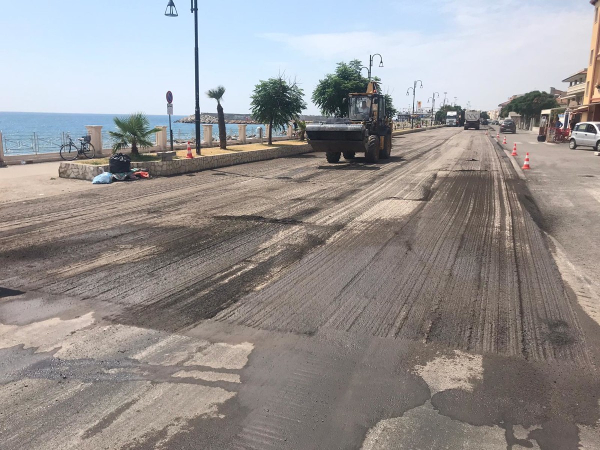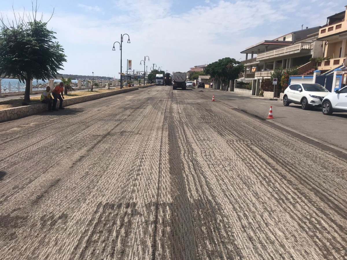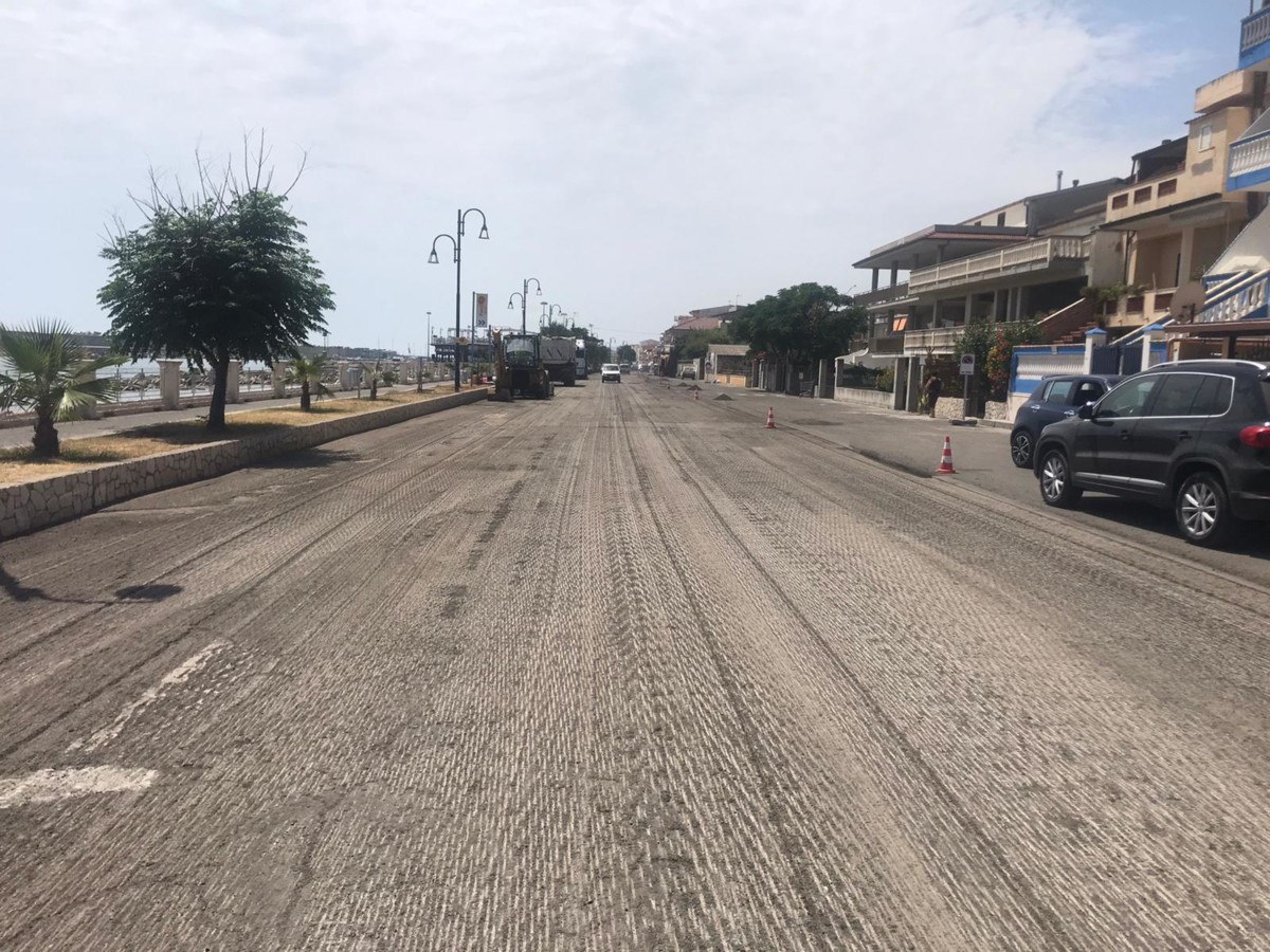 I lavori d’asfalto sono in fase completamento sul lungomare Nord, a breve verranno realizzati tre dossi stradali e tutta la segnaletica orizzontale.