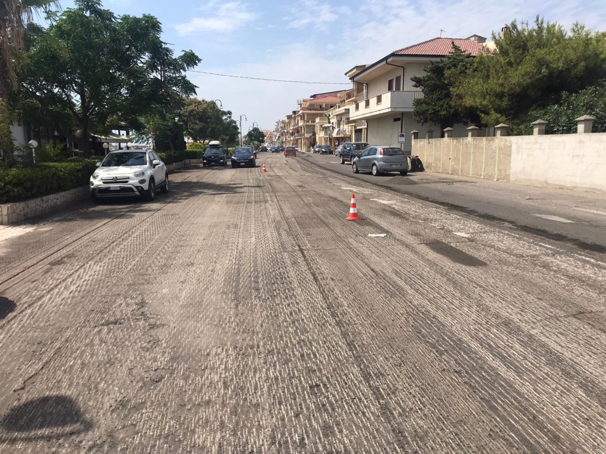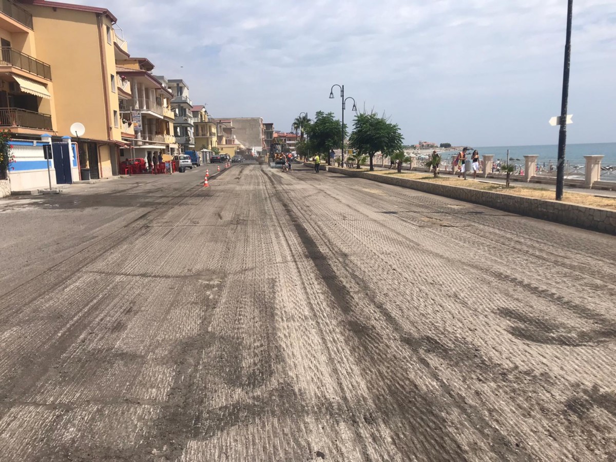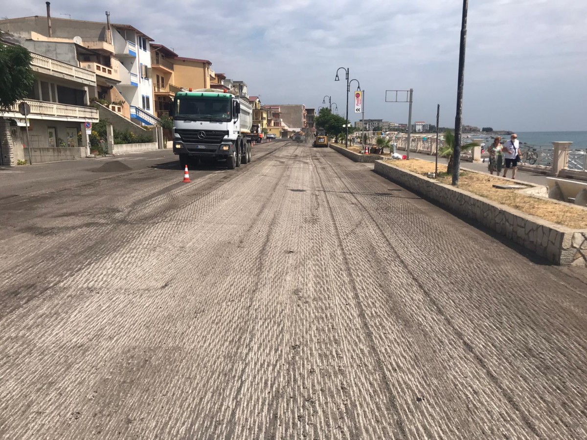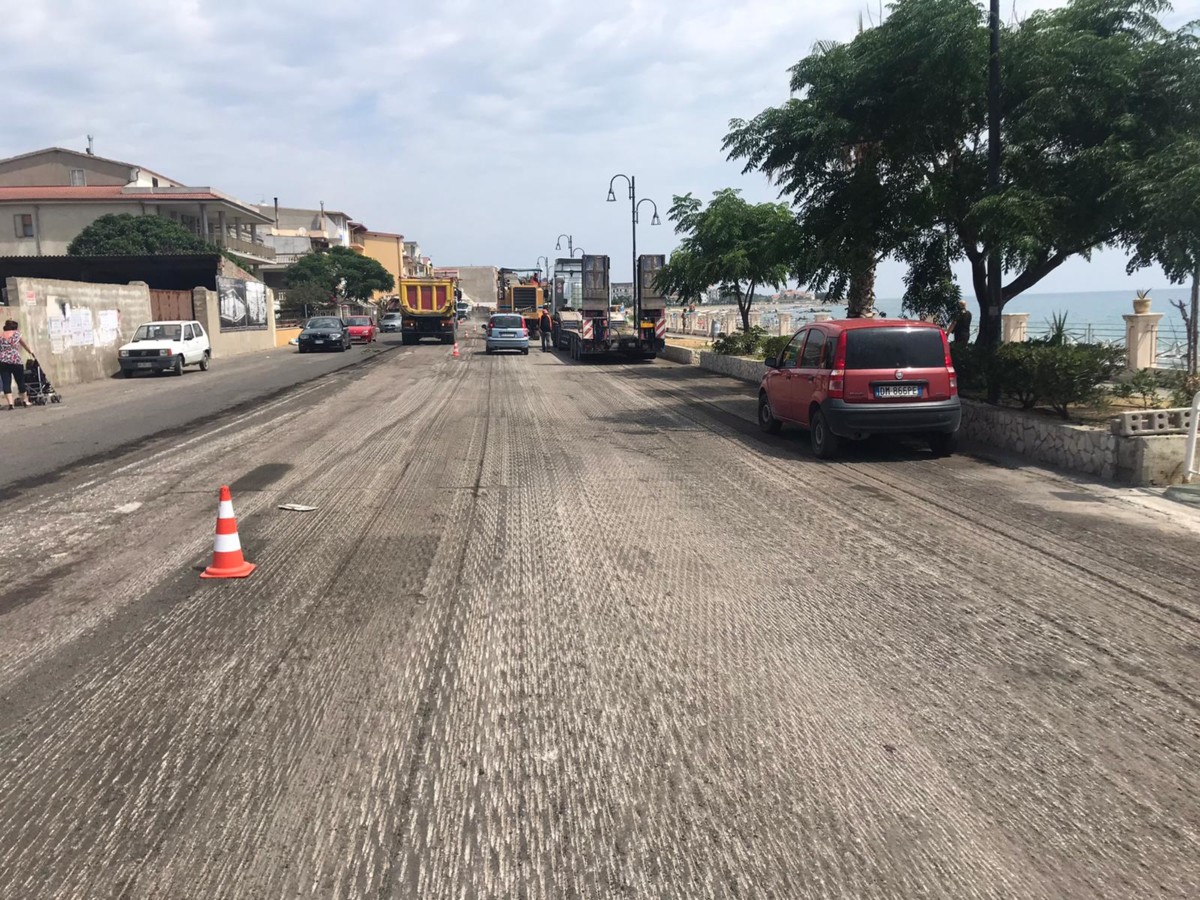 I lavori d’asfalto sono in fase completamento sul lungomare Nord, a breve verranno realizzati tre dossi stradali e tutta la segnaletica orizzontale.