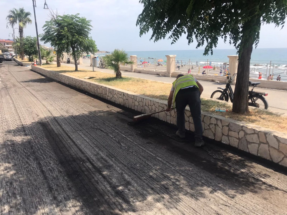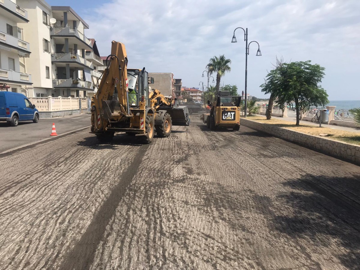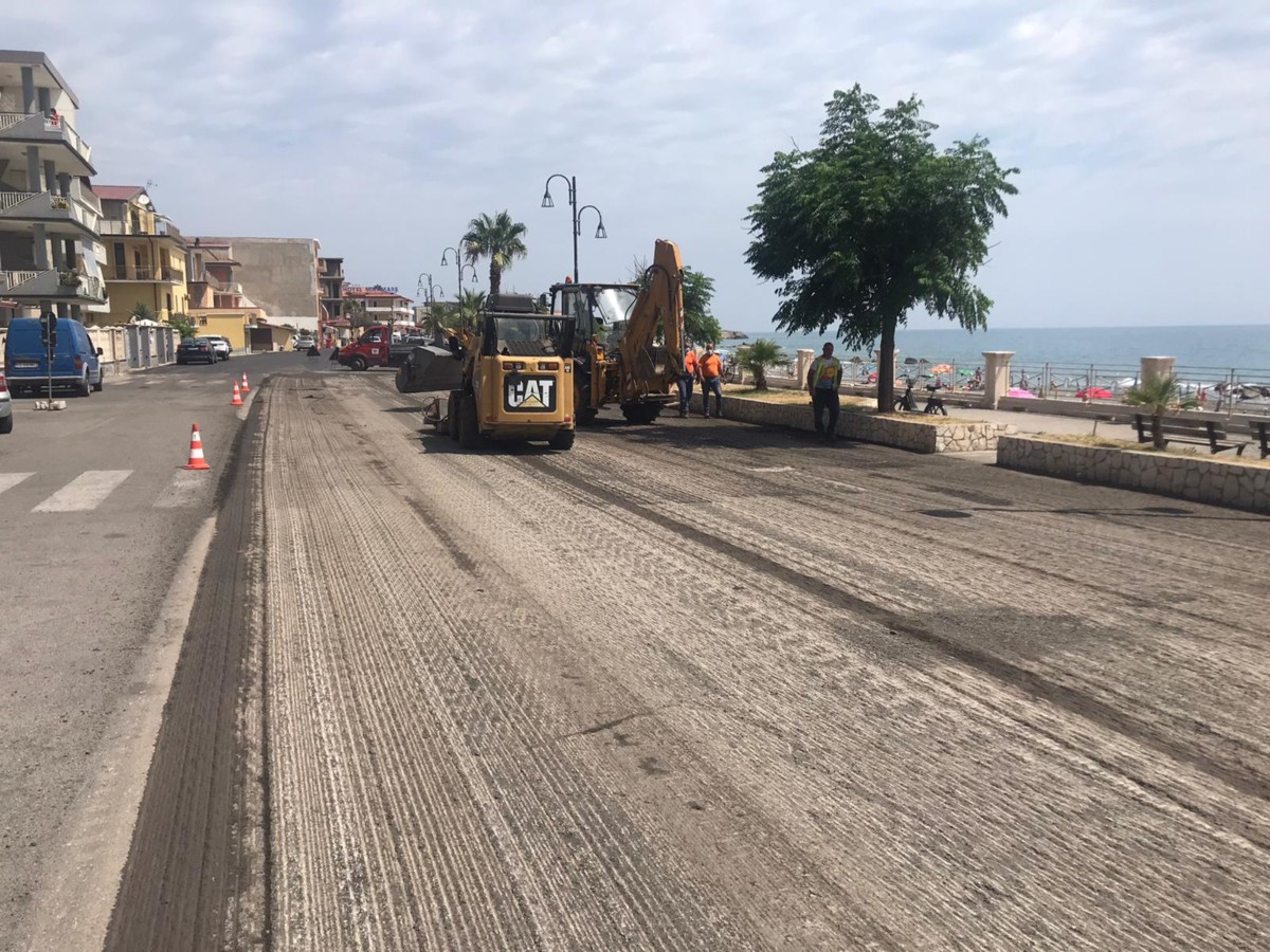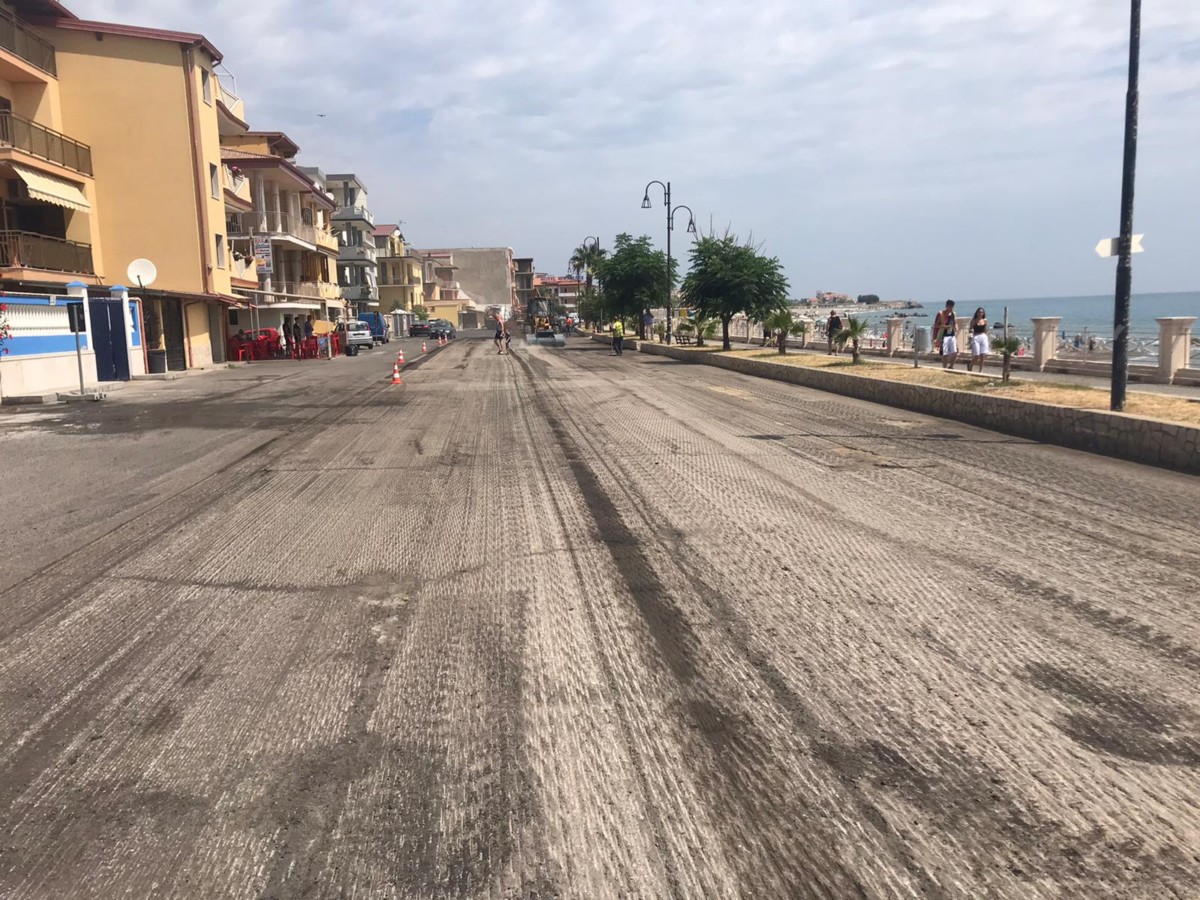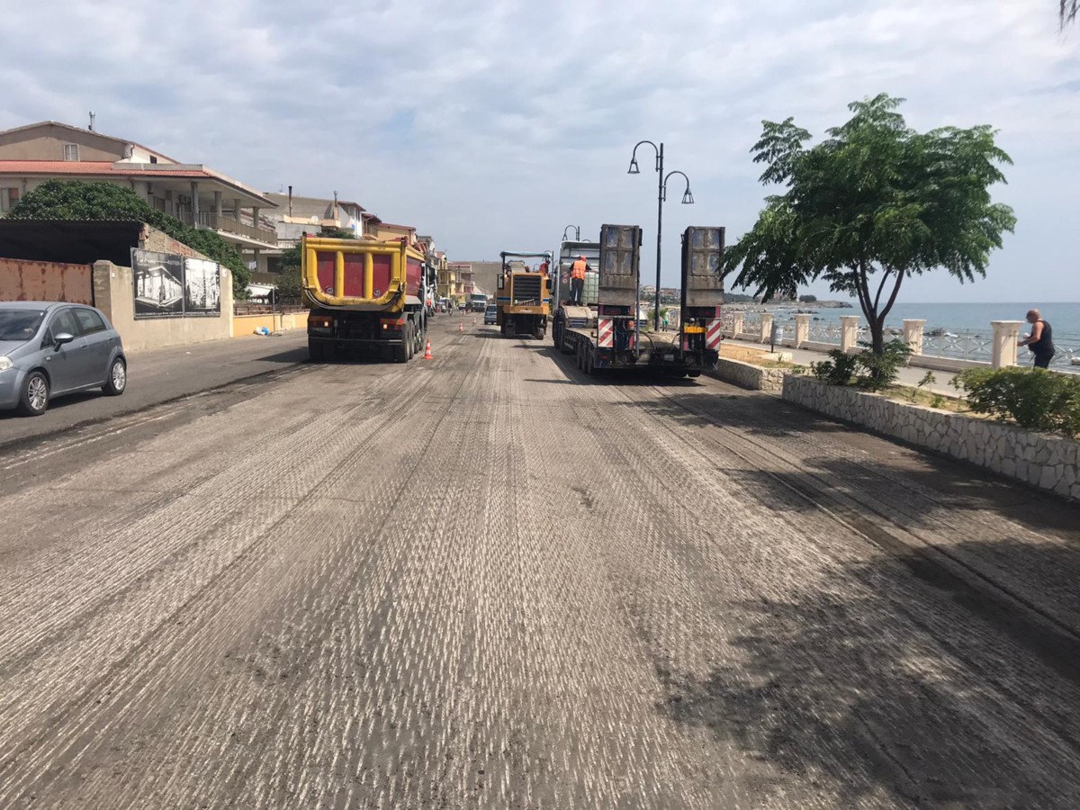 I lavori d’asfalto sono in fase completamento sul lungomare Nord, a breve verranno realizzati tre dossi stradali e tutta la segnaletica orizzontale.