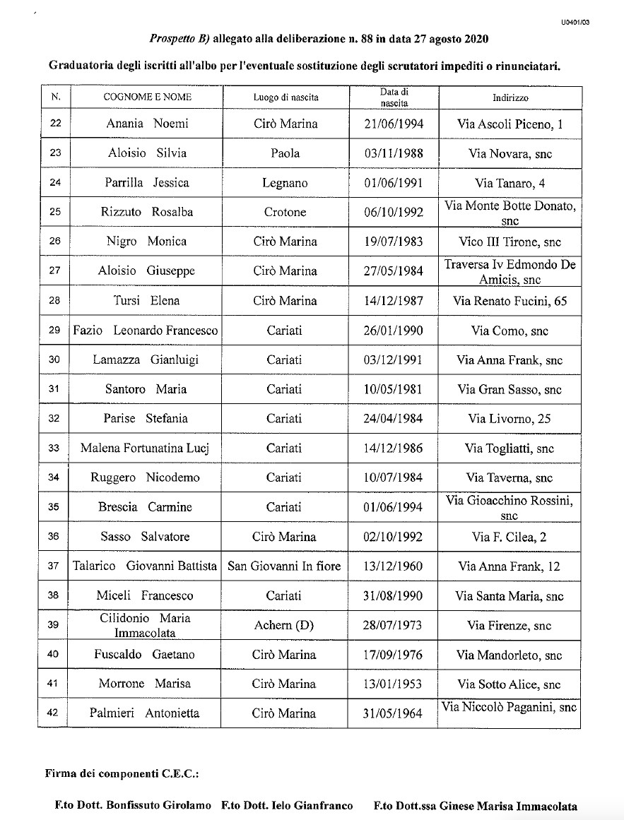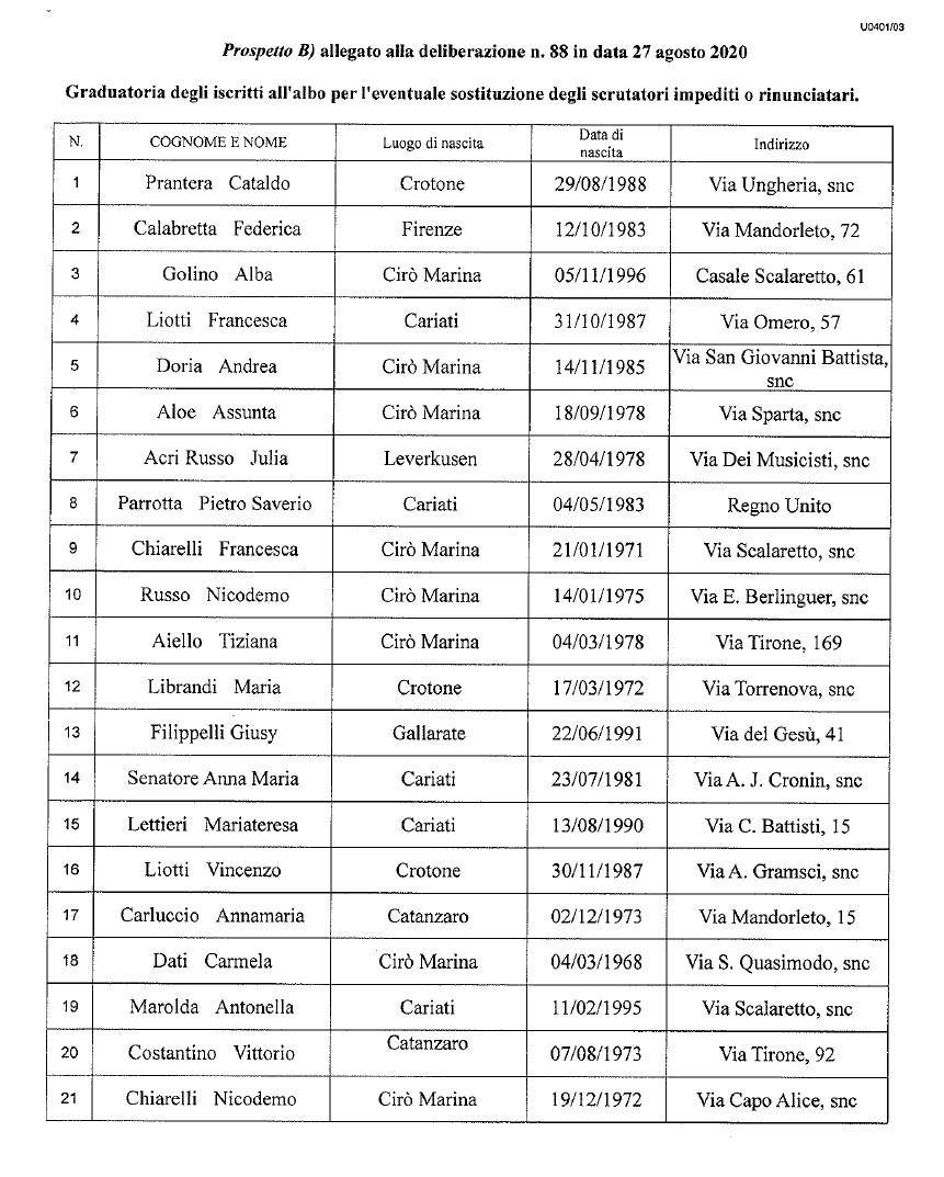 La Commissione Elettorale Comunale, riunitasi il 27 agosto 2020, in vista del Referendum costituzionale sul taglio dei parlamentari e, delle Elezioni comunali del 20 e 21 settembre 2020, presieduta dal Commissario Straordinario Dott. Girolamo Bonfissuto, dal Dott. Gianfranco Ielo come membro effettivo e assistita dal Segretario Dott.ssa Marisa Immacolata Ginese, ha deciso di procedere alla nomina degli scrutatori mediante sorteggio dall’Albo Generale.