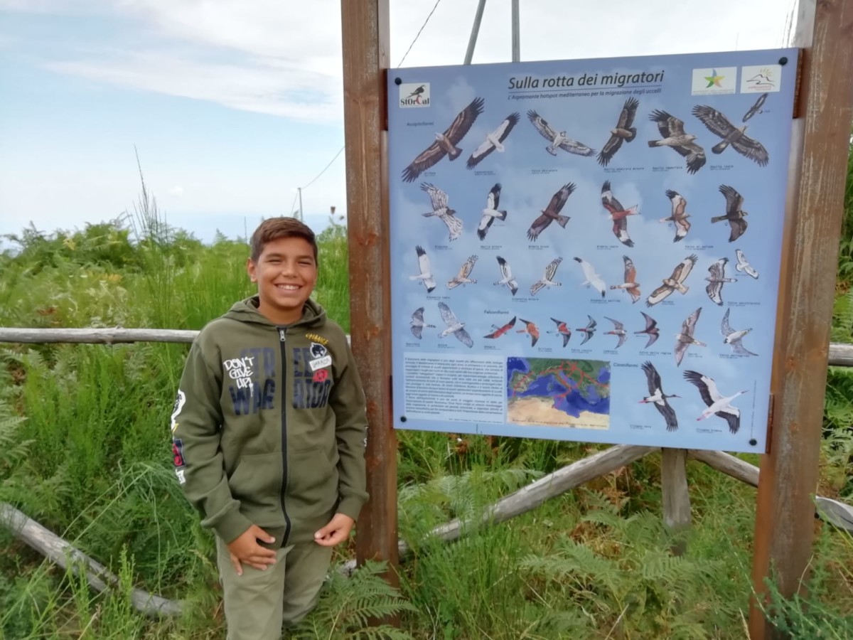 Nella settimana trascorsa su un’altana a censire i rapaci in transito sullo Stretto di Massina, sono stati contati più di 2000 uccelli: Falchi pecchiaioli, Falchi di palude, Albanelle, Aquile minori, Falco pescatore che passavano e per non parlare delle migliaia di Gruccioni e Rondini che transitavano sulla sua testa, diretti in Africa. Un momento emozionante è stato quando all’orizzonte è apparsa lei la regina dei cieli l’Aquila reale. Si vedeva la gioia di Giuseppe che il suo sogno si era realizzato. Non è facile per un bambino di 14 anni osservare in natura un’Aquila reale, solo la passione e la determinazione portano a fare certi incontri, che puntualmente vengono premiati con un osservazione di questo tipo. Si arricchisce così sempre di più il Curriculum ornitologico di un ragazzo che dopo lo studio insegue la passione dell’ornitologia.