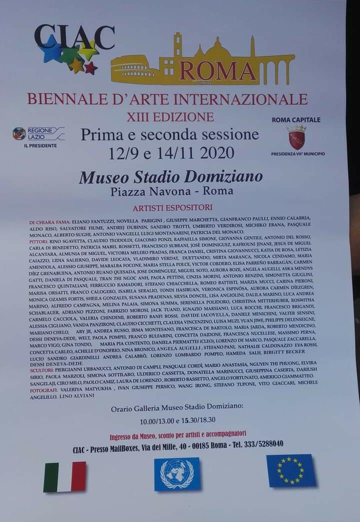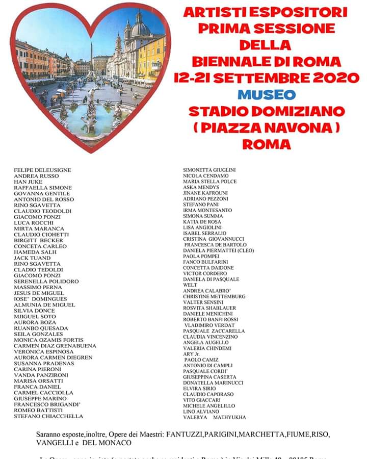 Un momento intenso nel magico museo Stadio di Domiziano (Piazza Navona, Roma) nell’esposizione della prima sessione della Biennale svolta dal 12 al 21 Settembre 2020.