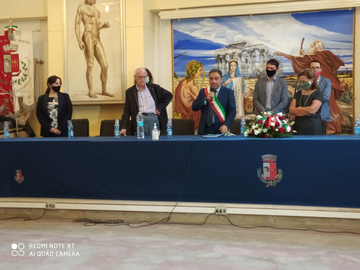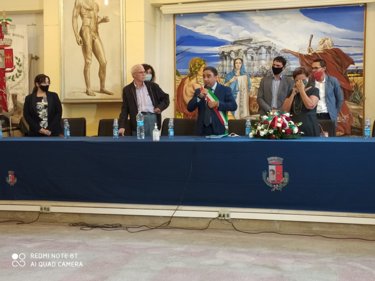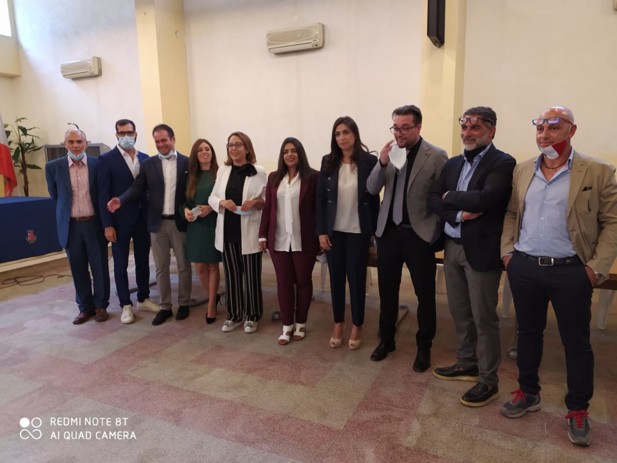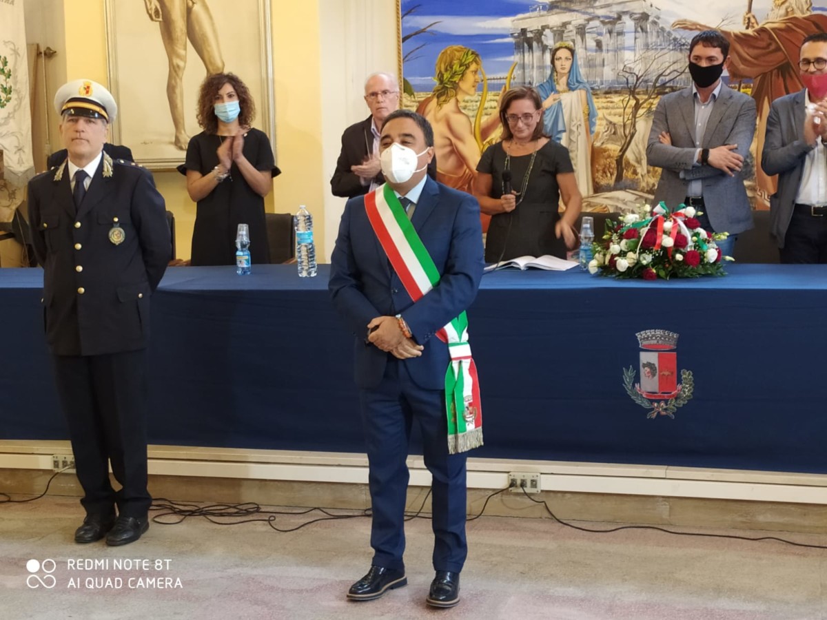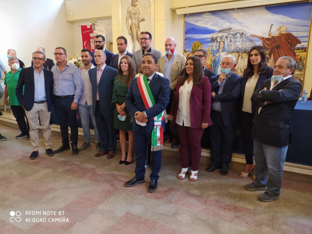 Un lungo applauso e la consegna della fascia tricolore da parte del comandante la Polizia Comunale, Salvatore Anania, ha sancito l’avvio della proclamazione dei componenti il nuovo consiglio Comunale.