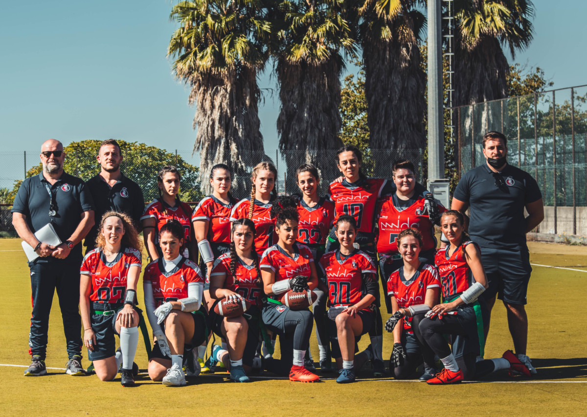 Francesco Perri, Defensive Coord.:” Dopo due anni dall’inizio del progetto, per me è un orgoglio e già un traguardo vedere le mie atlete iscritte ad un campionato ed affrontare il loro “battesimo di fuoco” a testa alta, senza alcun timore.