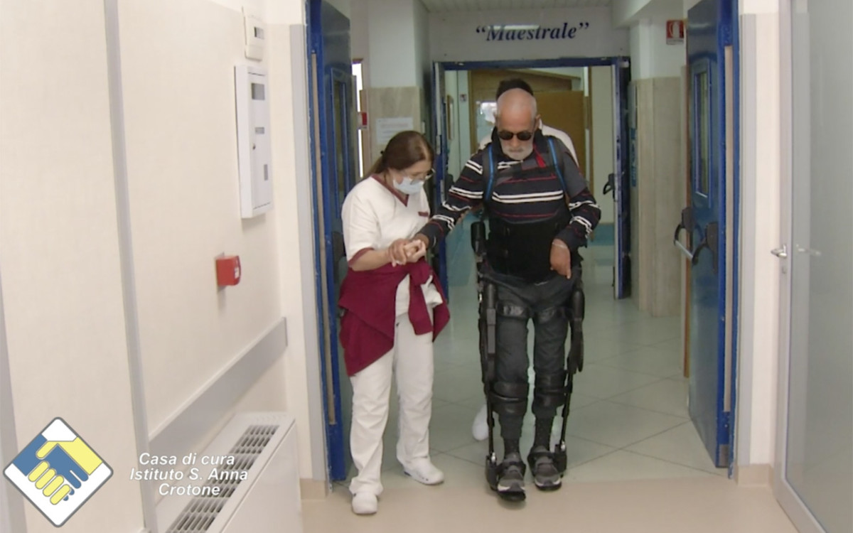Subito dopo averlo indossato per la prima volta, il signor Mario Zagari, paziente ricoverato presso l’Istituto S. Anna, spiega le sue sensazioni: “Credevo che avrebbe fatto tutto lui, e invece la cosa bella è che mi ha reso partecipe di questa esperienza. Ho provato di nuovo le sensazioni del camminare, con il suo aiuto, certo, ma con le mie gambe. Immaginavo che la mia sarebbe stata un’azione passiva, ma così non è stato: ci siamo divisi il compito, ed Ekso è stato una sorta di istruttore. A livello psicologico, poi, è uno strumento importantissimo, perché il fatto di poter fare nuovamente funzionare articolazioni e muscoli ti dice a livello psicologico che puoi reagire alla tua situazione”.