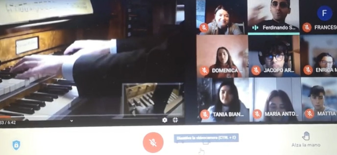È possibile fare lezione di musica a distanza? Fino a qualche mese fa la risposta sarebbe stata assolutamente negativa. Oggi, invece, si può dire che è possibile fare lezioni di musica a distanza non solo grazie alle piattaforme multimediali, ma soprattutto grazie a chi la musica ce l’ha nel cuore e non si ferma di fronte a nessun ostacolo. È l’esempio del giovane crotonese Ferdinando Sulla, affermato maestro e direttore d’orchestra, che nei giorni scorsi ha condotto, con entusiasmo e grande professionalità, un laboratorio di musica antica per gli studenti della IV A e VB dell’indirizzo musicale “V. Scaramuzza” del Liceo “Gravina” di Crotone. Il laboratorio, finanziato dalla Camera di Commercio di Crotone, nell’ambito dei Percorsi per le competenze trasversali e l’orientamento ovvero i PCTO (ex Alternanza Scuola-lavoro), è stato realizzato grazie alla collaborazione tra il Maestro Luca Campana dell’Associazione musicale E20 music management e i tutor interni Enrica Mistretta, docente di canto, e Umberto Guzzi, docente di percussioni. Durante il laboratorio, strutturato in quattro momenti per un totale di dieci ore, il maestro Sulla ha approfondito la figura del direttore d’orchestra e di coro, concentrandosi in particolare sull’aspetto della gestualità, e, insieme agli studenti, ha realizzato una vera e propria performance di direzione.