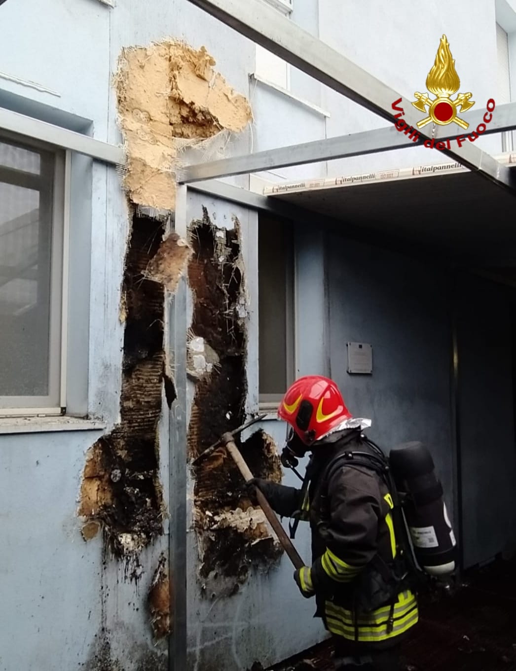 L’intervento è avvenuto presso l’Ospedale San Giovanni di Dio di Crotone, sviluppatosi nell’intercapedine situata tra le pannellature esterne dell’edificio, al primo piano.