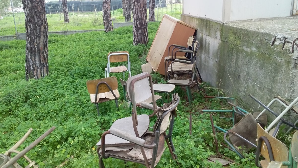 È ben visibile un totale stato di abbandono, fuori il perimetro della scuola.