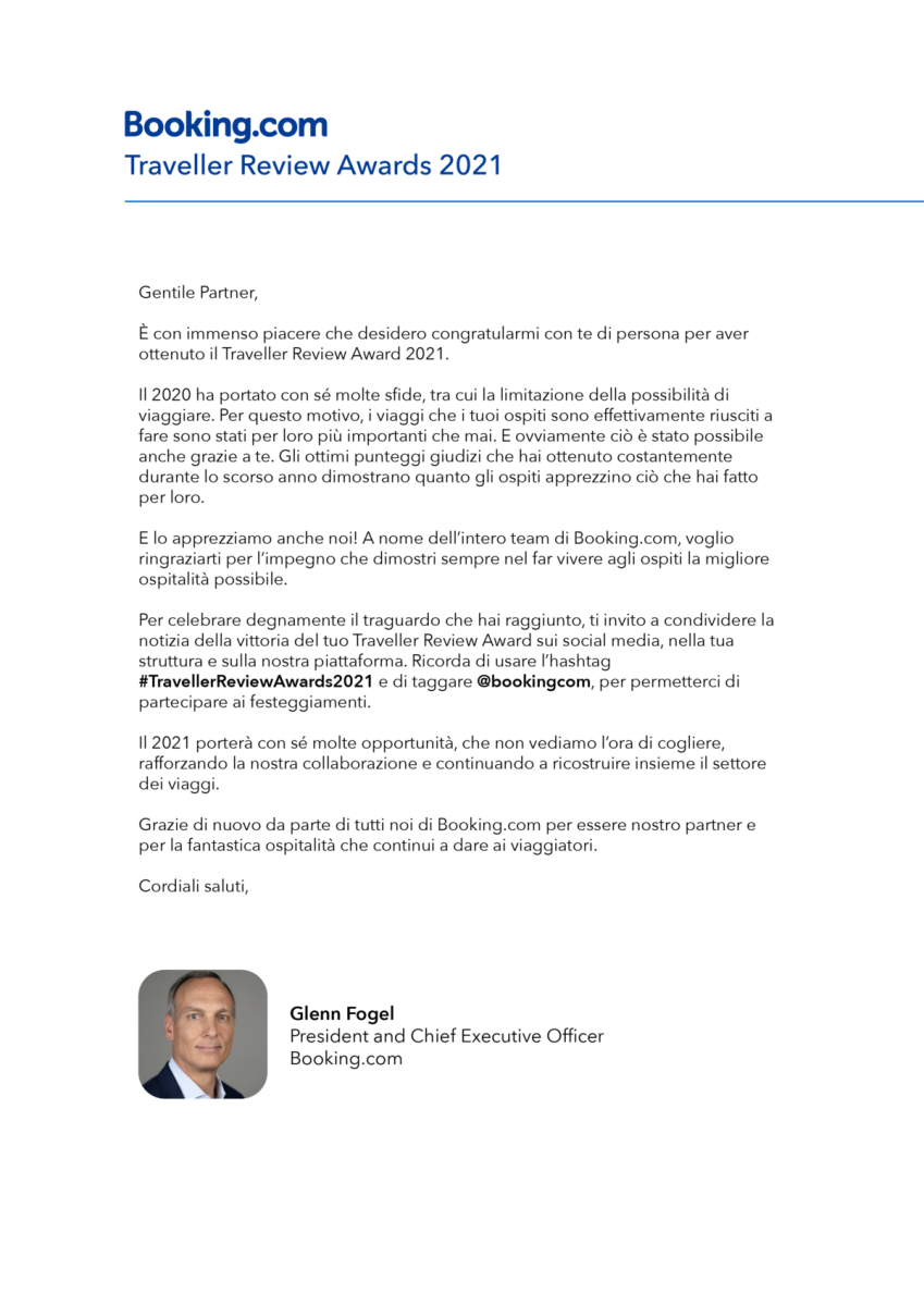 Il prestigioso riconoscimento “Traveller Review Awards 2021” del colosso dell’ospitalità Booking.com assegnato all’Hotel Ranch.