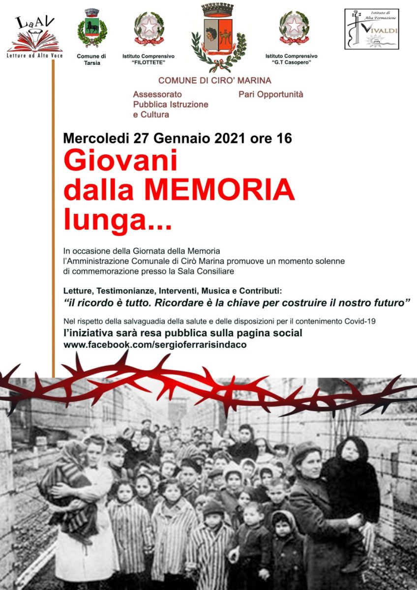 Mercoledì 27 è la giornata della Memoria. L’Amministrazione Comunale di Cirò Marina, Assessorato Pubblica Istruzione e Cultura Virginia Marasco, Consigliera delegata pari opportunità Francesca Larocca: