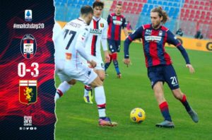 Il Crotone cade in casa col Genoa e resta in ultima posizione a 12 punti. Stroppa manda in campo dal primo minuto l’ultimo arrivato Di Carmine, Ballardini conferma Destro e Shomurodov in avanti.