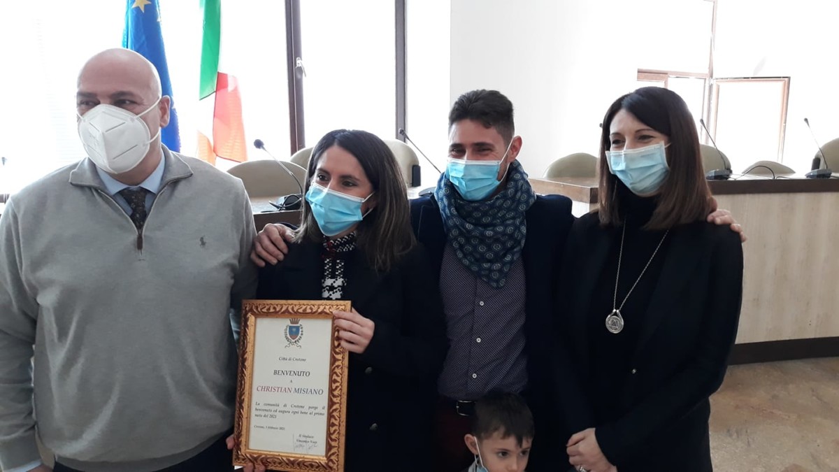 “Buona vita Christian”: primo nato del 2021, cerimonia di benvenuto nella casa comunale
