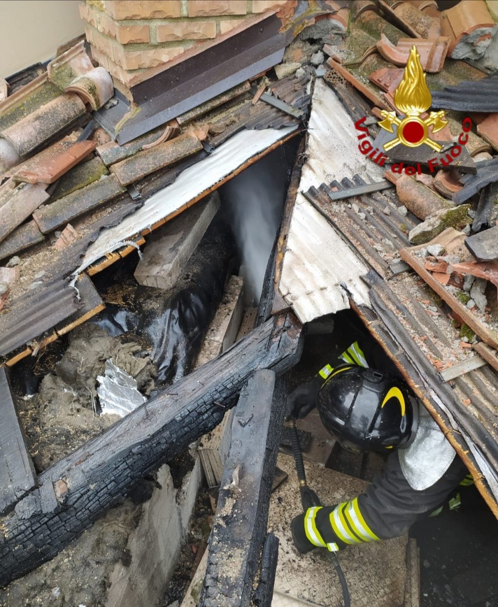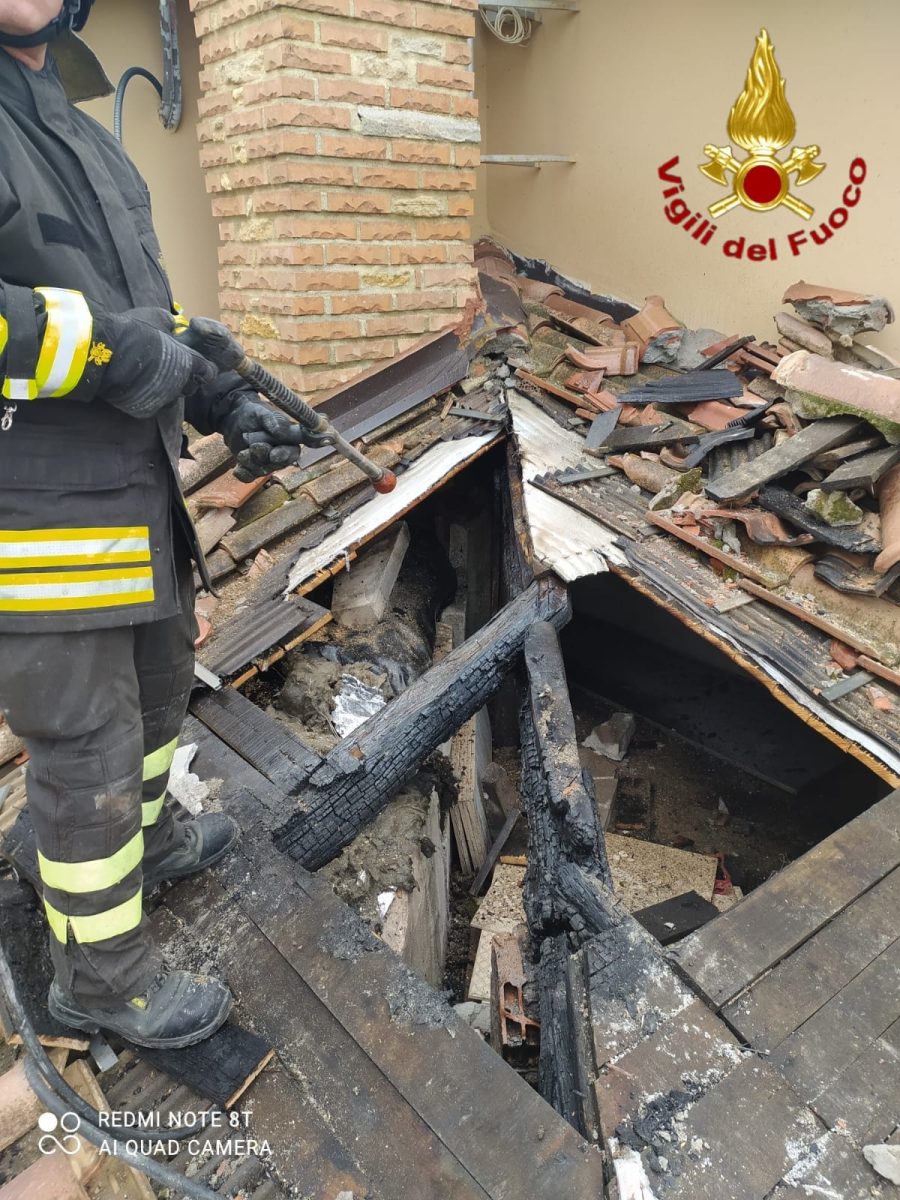 Arrivati sul posto c’era fumo e fiamme che avevano già interessato gra parte del tetto in legno, i vigili del fuoco con l’ausilio del naspo del mezzo più piccolo, salivano nella parte superiore dell’abilitazione ed estingue di l’incendio evitavano il propagarsi delle fiamme alle vicine case. Dalle prime indagini si capiva che tutto era partito dalla canna fumaria del caminetto e poi si è propagato al tetto.
