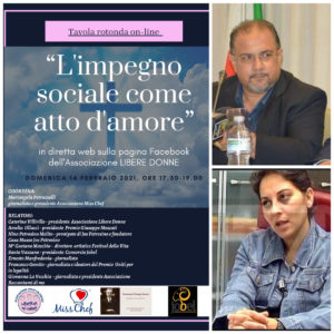 L’evento web viene promosso ed organizzato dall’Associazione Libere Donne di Crotone, presieduta dal Presidente Caterina Villirillo, associazione attiva contro la violenza e gli abusi delle donne, il femminicidio, il bullismo e a favore della tutela dei bambini e della famiglia in sinergia con l’Associazione MISS CHEF- di cui è presidente la giornalista internazionale Mariangela Petruzzelli- ed in particolare con lo “spin off” sociale-format di MISS CHEF, denominato “Donne intelletto d’amore e oltre” -conferenze per valorizzare e sostenere l’operato delle donne, soprattutto contro le emarginazioni e le violenze domestiche.