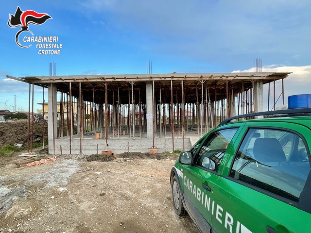 Nel corso di controlli nel territorio i militari della stazione CC Forestale Crotone hanno notato un fabbricato in corso di edificazione nella località Fondo Chiusa del comune isolitano. Il manufatto avente struttura in conglomerato cementizio armato, a un piano fuori terra ed in corso di edificazione, occupa una superficie in pianta di circa 150 m2. L’intervento dei militari ha bloccato il proseguimento dell’opera edificata, peraltro, in zona di interesse archeologico. I caratteri geometrici e la presenza di barre d’acciaio di ripresa dei getti indicano che l’opera era destinata verosimilmente ad essere soprelevata. L’opera non costituirebbe chiaramente neanche edilizia di necessità.