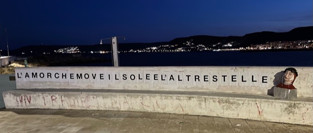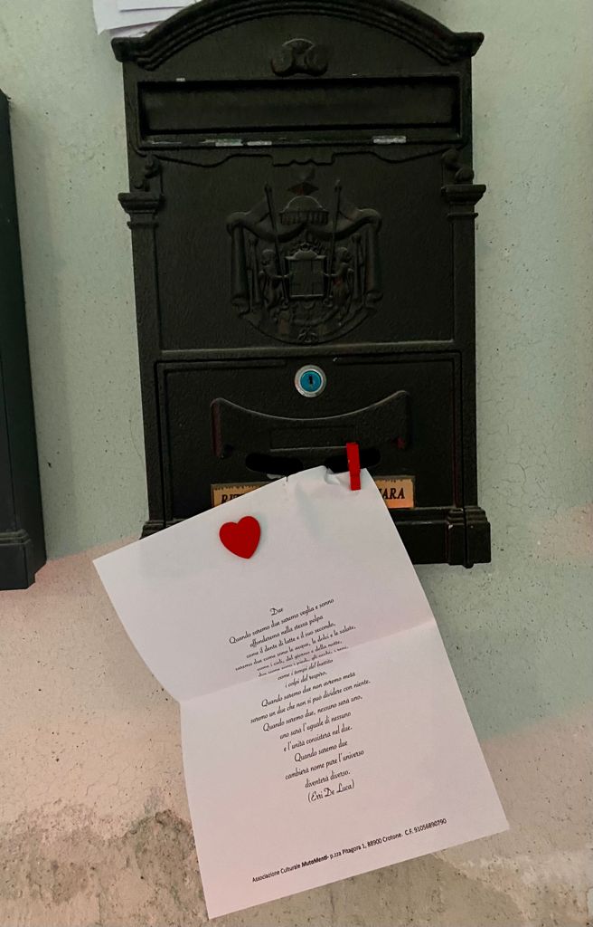 Dal 14 al 20 di febbraio la manifestazione è stata un successo grazie al tam tam mediatico dei social e al passaparola tra gli appassionati della letteratura e della poesia. L’edizione di quest’anno è stata, quasi interamente, dedicata al Sommo Poeta, di cui si celebrano, proprio nel 2021, i 700 anni dalla morte. Gli eventi di PoeCity sono partiti il giorno di San Valentino con “PoeCity delivery”. Il team di MutaMenti, attraverso delle speciali postine del cuore, ha consegnato a richiesta e a domicilio delle poesie d’amore. Il servizio ha registrato la partecipazione di coppie giovani e meno giovani che hanno regalato una poesia declamata dalle Cupide di MutaMenti al citofono o ai portoni, poi consegnata anche a mano. Dal 15 al 20 febbraio, sulla pagina Facebook di MutaMenti, si è svolto il flashmob #DivinaItalia che ha avuto come oggetto la rilettura delle terzine della Divina Commedia nei vari dialetti regionali. Sono arrivati decine di video da ogni parte del Bel Paese: Calabria, Veneto, Sicilia, Puglia, Toscana, Sardegna,Abruzzo, Sicilia, Marche, Molise, Piemonte, Lazio, Liguria, Basilicata ecc. Come in un abbraccio ideale, nel segno di Dante, ne è venuto fuori un viaggio virtuale che ha celebrato il Sommo Poeta, i suoi versi immortali e l’Italia, una e indivisibile, nella sua ricchezza di varietà di dialetti e lingue. E c’è chi si è spinto oltre, recitando anche una terzina anche nel linguaggio dei segni. A chiusura della manifestazione, venerdì sera, si è tenuto l’ultimo appuntamento, “PoeCity in the air”, un attacco poetico a sorpresa, in un punto della città, con un’installazione di versi. L’anno scorso MutaMenti ha preso di mira le scale del centro cittadino, quest’anno sul molo antistante la Lega Navale di Crotone è stato posizionato il verso dantesco “L’amor che move il sole e l’altre stelle”, insieme a un busto di cartapesta raffigurante Dante, realizzato da Angela Delfino. L’installazione ha suscitato la curiosità dei passanti e interesse. Sull’area, molto frequentata nel weekend, giovani, mamme e bambini si sono fermati per scattare selfie.