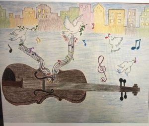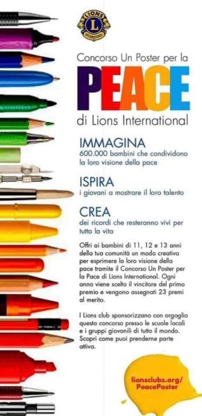 Il 26 e 27 Febbraio in occasione del X Congresso d’Inverno del Distretto Lions 108 YA, durante la premiazione ufficiale del concorso “Un Poster per la Pace”, il primo premio distrettuale è stato assegnato, in ex aequo con altri due club del Distretto, al Lions Club Cirò Krimisa e al poster di Gaia Pugliese, studentessa al terzo anno della scuola secondaria di primo grado dell’Istituto Casopero. La presidente del service, Mariolina De Franco, ha riportato la motivazione della scelta di questo elaborato, che raffigura, con marcata accuratezza nei particolari, un bellissimo violino adagiato sulle acque del nostro mare Jonio con alle spalle Cirò Marina e le sue case, tante colombe e infinite note musicali che si sprigionano dallo strumento per espandersi nel cielo ed indicano l’amorevole servizio che la Musica dà al mondo nel lenire le ansie, la solitudine, il dolore che in questo terribile periodo di Pandemia in particolare, affliggono tutti noi.