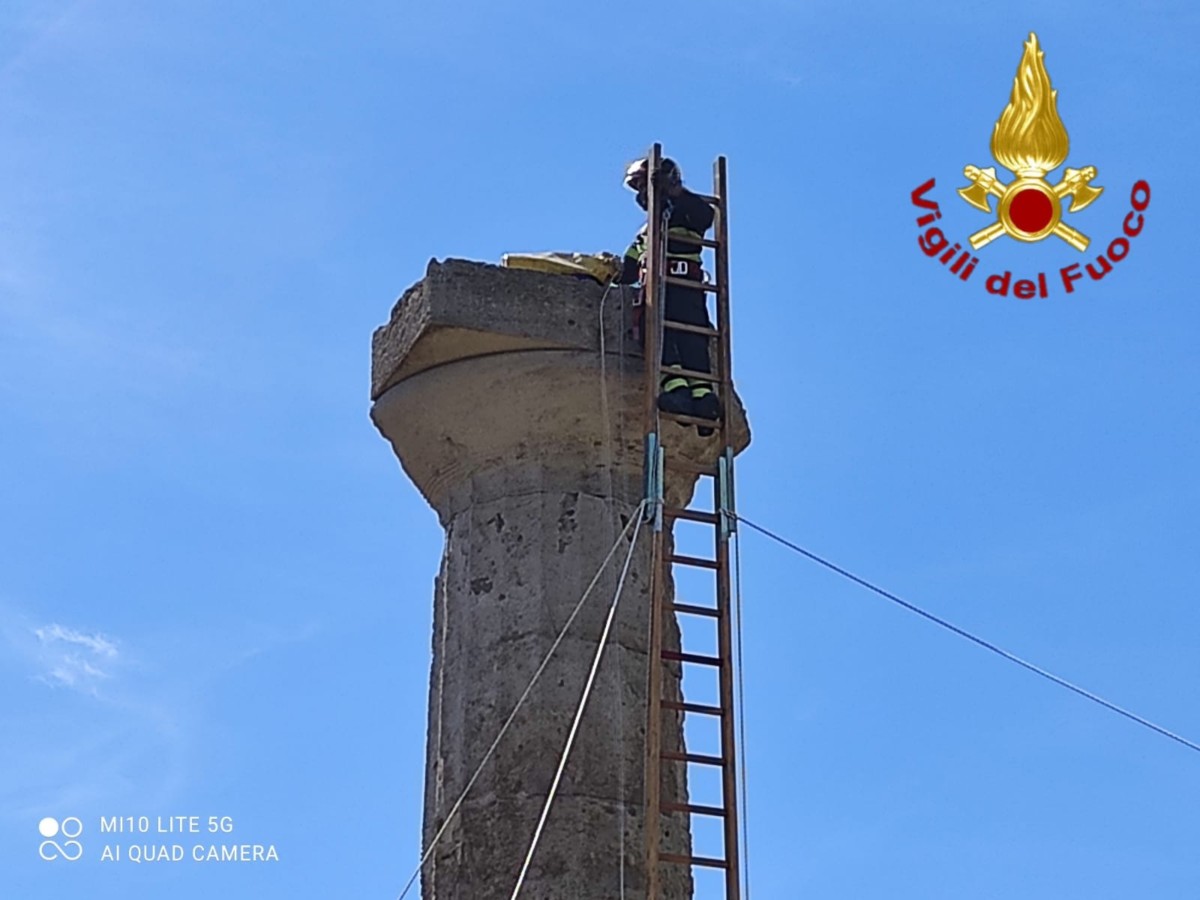 I Vigili del fuoco intervenuti con una manovra specifica, hanno posizionato la scala italiana tenendola in verticale tramite una serie di corde, manovra chiamata in gergo tecnico “scala controventata” gli stessi hanno poi sistemato gli strumenti di misurazione in cima alla colonna, l’intervento è durato circa quattro ore.