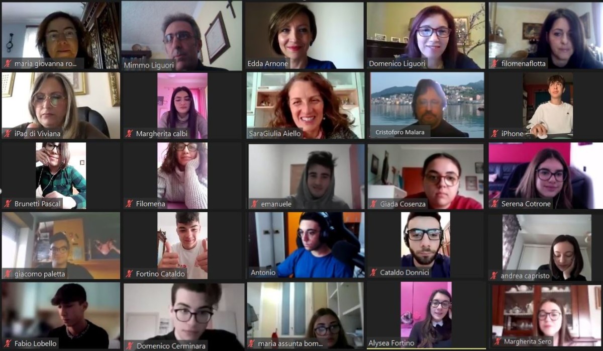 Questa occasione, ha spiegato il prof. Domenico Liguori, promotore ed organizzatore della manifestazione, ha lo scopo di avvicinare gli alunni alla matematica in modo ludico, facendogli scoprire la sua natura emozionante ed anche divertente che spesso non traspare nelle ore di insegnamento curriculari. L’occasione di divulgare la matematica e di ricercare didattiche innovative ed alternative all’insegnamento tradizionale di questa materia, ha affermato la D.S. Prof.ssa Sara Giulia Aiello, diventa un obiettivo fondamentale per una scuola che vuole centrare il proprio interesse sull’alunno. La manifestazione è stata animata da giochi come la recita a memoria di 250 cifre decimali del pi greco da parte di Affatato Mario (classe IIA) e da intrattenimenti musicali ad opera di Alysea Fortino (classe VA), Lobello Fabio e Margherita Sero (classe (IIIA). Il tradizionale buffet di dolci a tema è stato, purtroppo, sostituito da illustrazioni fotografiche come il dolce a forma di pi greco realizzato da Antonietta Iacoi e Serena Cotrone della classe IIIA. Il connubio tra le discipline scientifiche e quelle umanistiche quest’anno è avvenuto attraverso la celebrazione dei 700 anni della morte di Dante Alighieri. Il Prof. Domenico Liguori ha intrattenuto gli ospiti del Pi Day con una lezione sulla matematica nella Divina Commedia coadiuvato dalla Prof.ssa Edda Arnone per la parte letteraria. In lezione transdisciplinare si sono inseriti gli alunni della IVA, preparati dalla Prof.ssa Maria Giovanna Romanello, con una relazione presentata dalla studentessa Calbi Margherita e gli alunni della IVB, preparati dalla Prof.ssa Edda Arnone, con la lettura delle terzine analizzate dal punto di vista matematico da parte di: Fortino Antonio, Donnici Cataldo, Paletta Giacomo, Olivieri Emanuele e Minutolo Angelica. Gli alunni della IIA, guidati dal prof. Domenico Liguori, hanno realizzato con del cartoncino i Solidi Platonici le cui proprietà sono state presentate da Brunetti Pascal, Zolli Naomi, Russo Giusy, Palmieri Filomena, Zop Serafino, Leone Maria, Capristo Andrea e Santoro Sara. La classe IIB con il contributo degli studenti: Carone Aurora, Caruso Martina, Lettieri Grazia Elena, Bombino Maria, Esposito Ylenia, Greco Antonia, Liguori Valeria, Pirillo Gennaro, Santoro Mariasole, Arcuri Elena e Scigliano Alessia, invece, ha prodotto dei disegni sul tema dell’incontro tra Dante, la matematica ed il compleanno di Albert Einstein. La classe IID, guidata dalla prof.ssa Edda Arnone, ha realizzato e presentato un originale video che illustra un dialogo immaginario tra Dante e Einstein. I giochi si sono chiusi giorno 14 alle ore 15 (per ricordare le prime 5 cifre del pi greco 3.1415) con un cruciverba a tema rivolto a tutti gli alunni dell’IIS Cariati ed i vincitori sono stati ex equo: Emanuele Olivieri, Giovanni Marino e Salvatore Doldo.