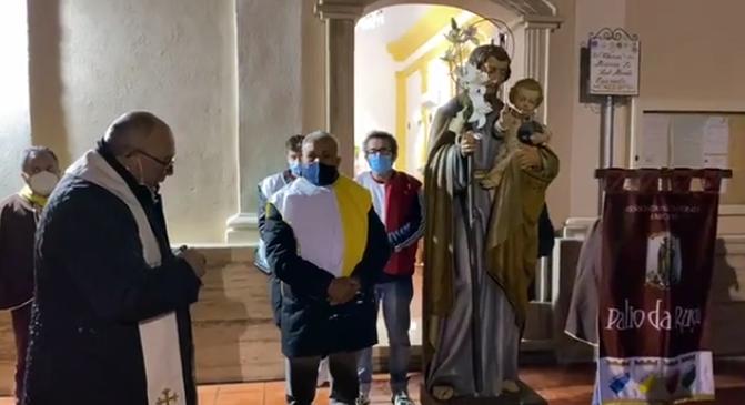 L’associazione Culturale Amici del Palio, infatti non ha voluto far mancare alcuni riti simbolici che caratterizzano da anni dal 16 al 19 Marzo questa particolare festa, che anima il borgo marinaro, a cui viene abbinato il seguitissimo Palio da Ruga. Il 18 sera e’ stata “calata” la statua lignea di San Giuseppe dalla sua nicchia e posizionata sull’ altare. Momento emozionante trasmesso in diretta sui canali Social dell’ Associazione, preceduto dalla riconsegna del Palio, ovvero il quadro raffigurante San Giuseppe, da parte del Priore della Ruga Berlingeri, Vincenzo Rosati, ultimi vincitori del Palio medesimo nel 2019. Il 19 Marzo i volontari dell’ Associazione, dalle prime ore del mattino hanno tenuto aperta la Chiesetta, cosi da permettere ai fedeli in modo ordinato e sicuro di poter salutare la Statua del Santo. Alle 16 la Messa Solenne celebrata dal Parroco Don Pino Mauro, che per motivi di avversita’ climatiche e’ stata celebrata nella Chiesa del Ss Crocifisso, invece del Sagrato della Chiesetta come previsto nel programma. Un momento intimo di fede e religiosita’ come piu’ volte sottolineato dallo stesso Parroco, che ha anche rimarcato, i valori dello stare insieme e della fratellanza nella lunga e profonda omelia. Alle 19 nella Chiesetta il momento clou, con la Benedizione delle Mantelline votive e dei Ruganti, un gesto simbolico verso tutti i giovani che ogni anno competono nelle gare del Palio. Le mantelle benedette invece, nelle parole del Parroco, rappresentano un atto di volonta’, nell’ indossare una responsabilita’, una responsabilita’ nel tramandare valori e tradizioni verso le giovani generazioni. Subito dopo la Statua tenuta sulle spalle dei rappresentanti delle 4 Rughe Torre Melissesi, all’ esterno della Chiesetta, sul sagrato antistante allestito per l’ occasione con le bandiere ed i drappi delle Rughe, e’ stata salutata dai Fuochi d’ artificio. Una festa dunque non svolta come al solito, in ossequio alle norme anti covid, ma che ha avuto comunque tanti momenti carichi di devozione e di ritualita’, che ha coinvolto attivamente tutti i gruppi Parrochiali. Instancabile come al solito il lavoro dell’ Associazione Amici del Palio, che anche in queste ristrettissime condizioni ha cercato di mantenere viva una antica tradizione e soprattutto lanciare un messaggio di speranza e positivita’ per il futuro, che speriamo diventi presto normale.