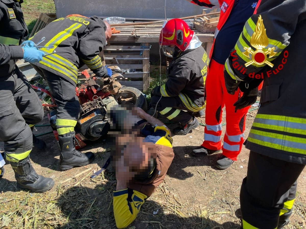 L’intervento dei vigili del fuoco, protrattosi per alcune ore a causa della delicata situazione, è valso ad estrarre gli arti inferiori del malcapitato. L’intervento è stato veloce, grazie al buon lavoro dei vigili del fuoco la gamba interessata è salva. Lo stesso veniva immediatamente affidato alle cure del personale sanitario del Suem118 che provvedeva con ausilio dell’elisoccorso al trasferimento presso struttura ospedaliera.