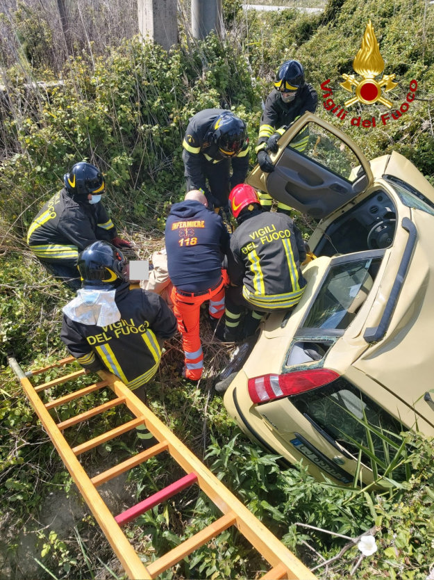 All’arrivo repentino sul posto della squadra dei vigili del fuoco, la situazione si presentava critica, vi era coinvolta una sola autovettura un Fiat panda uscita fuori strada, in un canalone di scolo, con all’interno due persone incastrate.