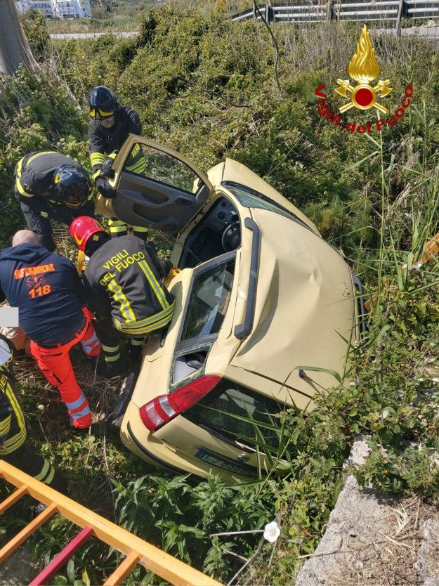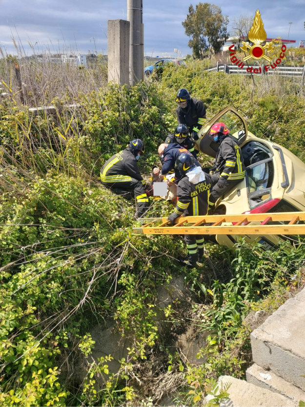 I vigili del fuoco con l’ausilio anche di scale, vista la posizione dell’autovettura in nel canalone, hanno estratto due persone, un 50enne e il papà di 87enne entrambi residenti a Crotone, consegnandoli alle cure del 118 che li trasportavano in ospedale.