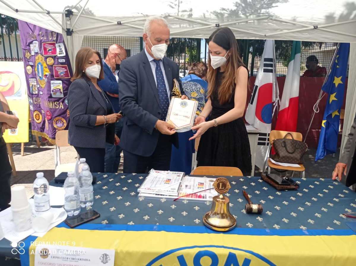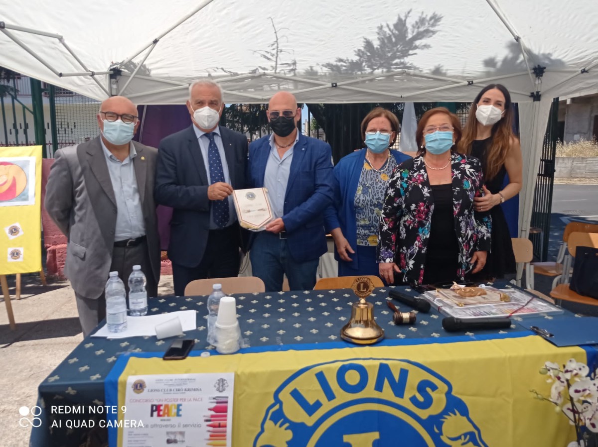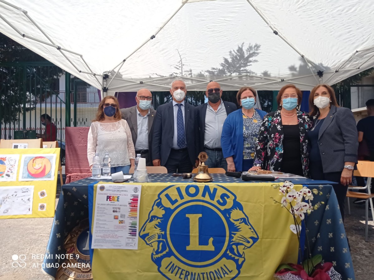 Nel piazzale antistante l’edificio, alla presenza di un pubblico distanziato e limitato nel rispetto delle norme anticovid, i ragazzi hanno raccontato il loro “servizio”, durante una mattinata emozionante e coinvolgente, vissuta attraverso i loro disegni, le loro parole, la loro musica. Poiché l’arte promuove la riflessione su un tema di tale importanza, ha sottolineato la Dirigente Scolastica Graziella Spinali, in un parallelismo tra linguaggi pittorici e musicali, che attraverso la negazione della parola stessa di pace, e della destrutturazione dell’immagine di guerra, ci guida verso l’affermazione del suo valore intrinseco, la Pace primo valore tra tutti, che non può prescindere dalla bontà del servizio, e concludendo con l’augurio indirizzato particolarmente ai ragazzi, di saper sempre discernere il bene dal male. Un filo conduttore, la pace, dipanato negli interventi delle autorità lionistiche, civili e religiose, che hanno preso parte alla Cerimonia, a cominciare dal presidente del Lions Club, Antonio Gallella, che ha salutato e ringraziato tutti i partecipanti e la scuola organizzatrice, manifestando l’orgoglio di presenziare un evento che è diventato ormai una tappa fondamentale di ogni anno lionistico del club, proprio per l’interazione e l’impatto positivo che produce sui giovanissimi partecipanti, i quali ci stupiscono e commuovono ogni volta, con la loro sensibilità, e di riflesso sul mondo degli adulti. La Pace non si deve dare per scontata, ma deve essere coltivata e costruita ogni giorno all’insegna della tolleranza, della solidarietà e del rispetto reciproco, temi cari all’etica lionistica.