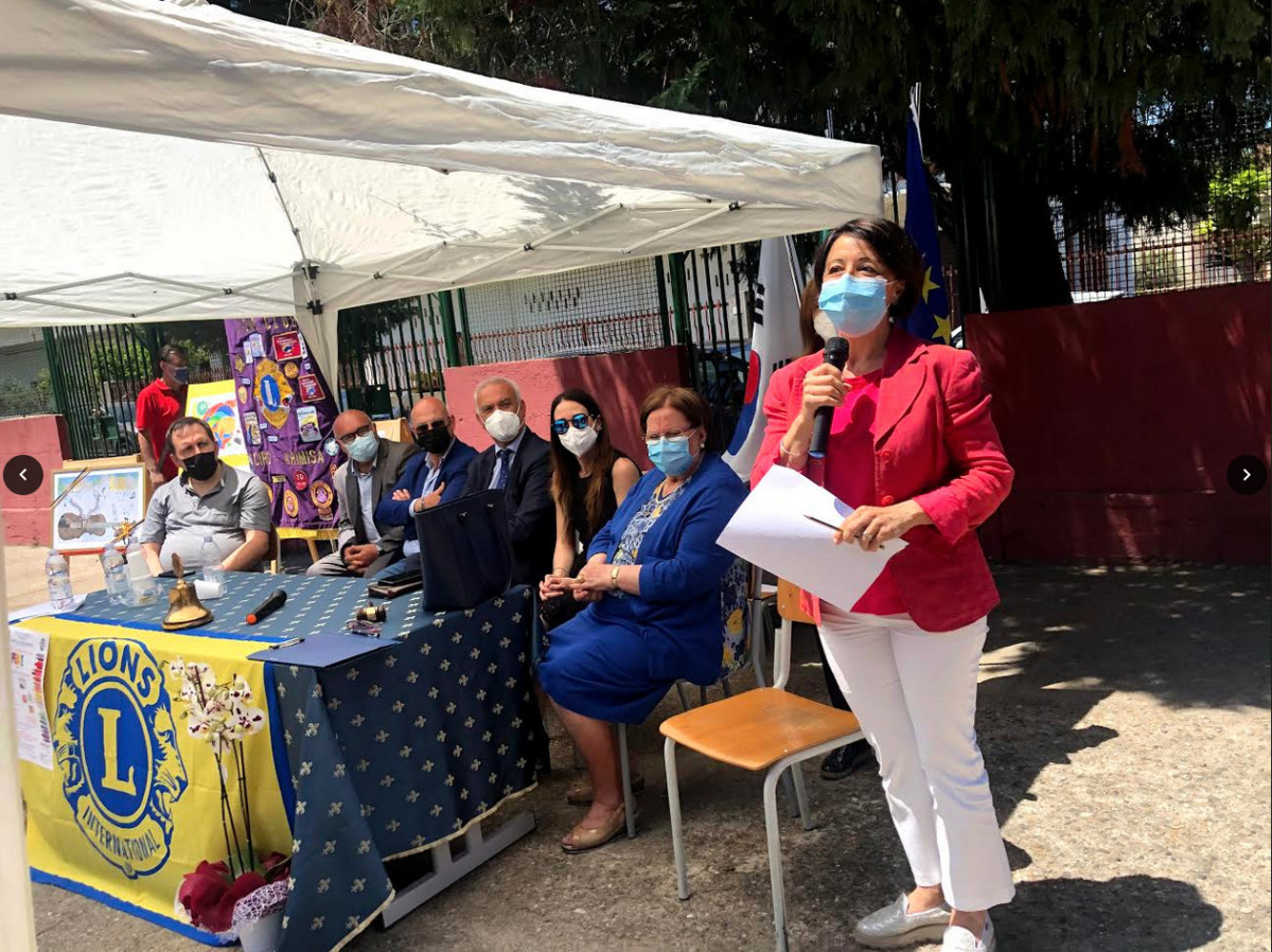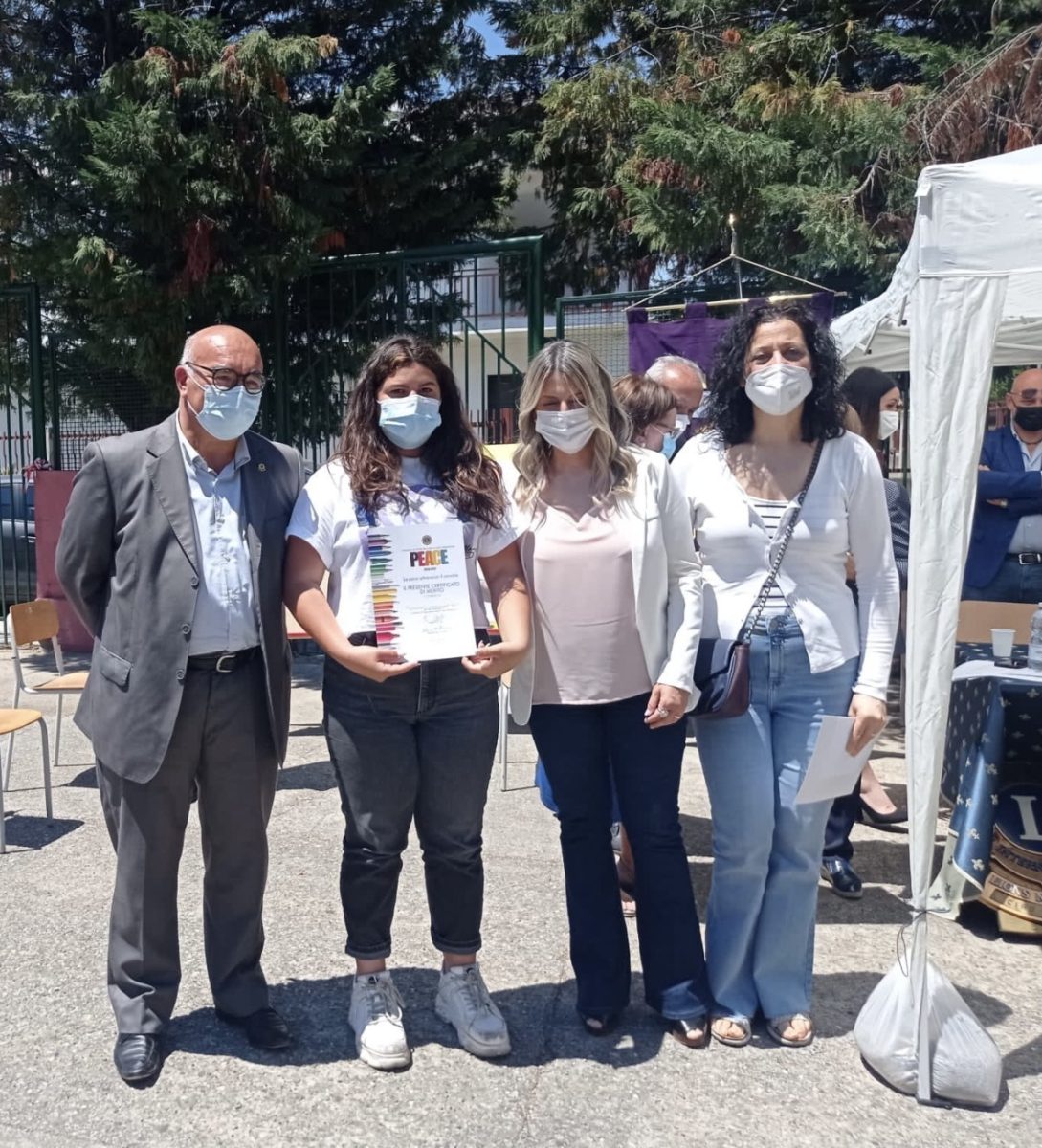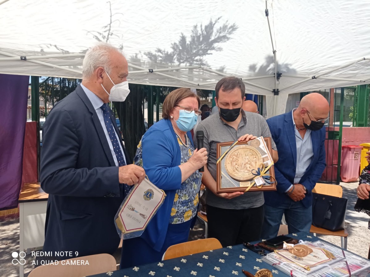 Nel piazzale antistante l’edificio, alla presenza di un pubblico distanziato e limitato nel rispetto delle norme anticovid, i ragazzi hanno raccontato il loro “servizio”, durante una mattinata emozionante e coinvolgente, vissuta attraverso i loro disegni, le loro parole, la loro musica. Poiché l’arte promuove la riflessione su un tema di tale importanza, ha sottolineato la Dirigente Scolastica Graziella Spinali, in un parallelismo tra linguaggi pittorici e musicali, che attraverso la negazione della parola stessa di pace, e della destrutturazione dell’immagine di guerra, ci guida verso l’affermazione del suo valore intrinseco, la Pace primo valore tra tutti, che non può prescindere dalla bontà del servizio, e concludendo con l’augurio indirizzato particolarmente ai ragazzi, di saper sempre discernere il bene dal male. Un filo conduttore, la pace, dipanato negli interventi delle autorità lionistiche, civili e religiose, che hanno preso parte alla Cerimonia, a cominciare dal presidente del Lions Club, Antonio Gallella, che ha salutato e ringraziato tutti i partecipanti e la scuola organizzatrice, manifestando l’orgoglio di presenziare un evento che è diventato ormai una tappa fondamentale di ogni anno lionistico del club, proprio per l’interazione e l’impatto positivo che produce sui giovanissimi partecipanti, i quali ci stupiscono e commuovono ogni volta, con la loro sensibilità, e di riflesso sul mondo degli adulti. La Pace non si deve dare per scontata, ma deve essere coltivata e costruita ogni giorno all’insegna della tolleranza, della solidarietà e del rispetto reciproco, temi cari all’etica lionistica.