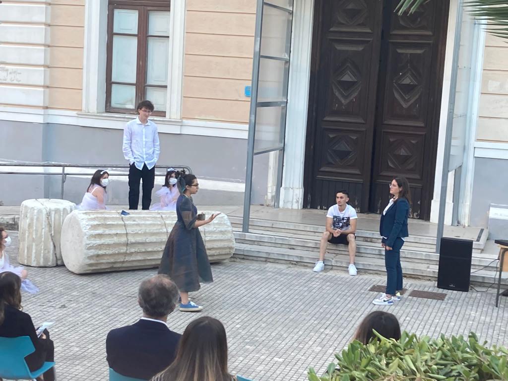 Alla cerimonia ha partecipato anche il gruppo teatrale del liceo Pitagora “Le Nuvole” guidato dalle docenti Cecilia Adamo e Angela Bifano.