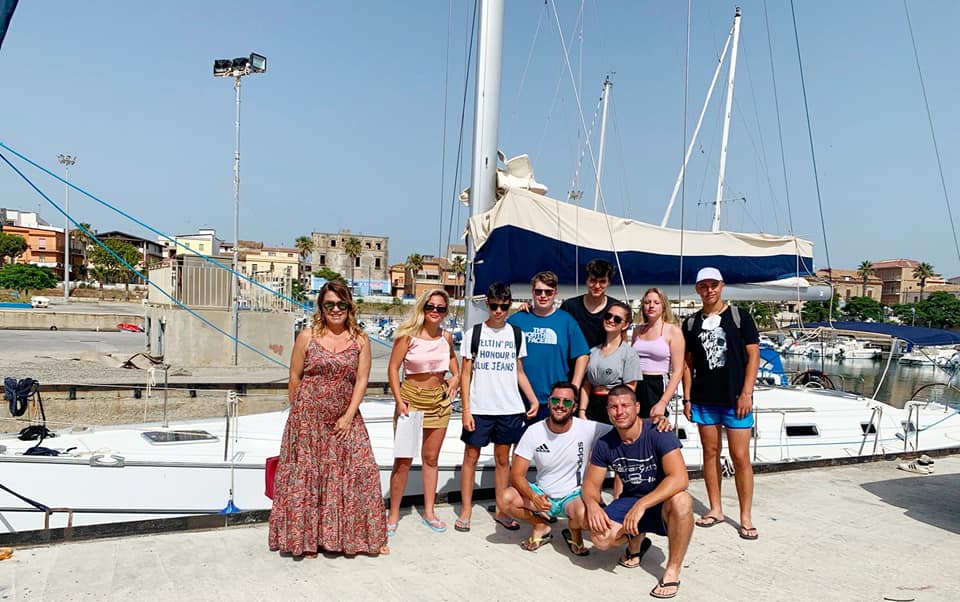 Ogni 10 giorni un nuovo approdo. Prossima tappa previste due imbarcazioni con 20 ragazzi! Abbiamo fatto visitare il museo con la sempre disponibilità e professionalità dell’associazione Frammenti, tappa al faro, alla chiesa di San Cataldo, al Museo della Lince grazie al maresciallo Baldassarre, Mercati Saraceni, cantina.