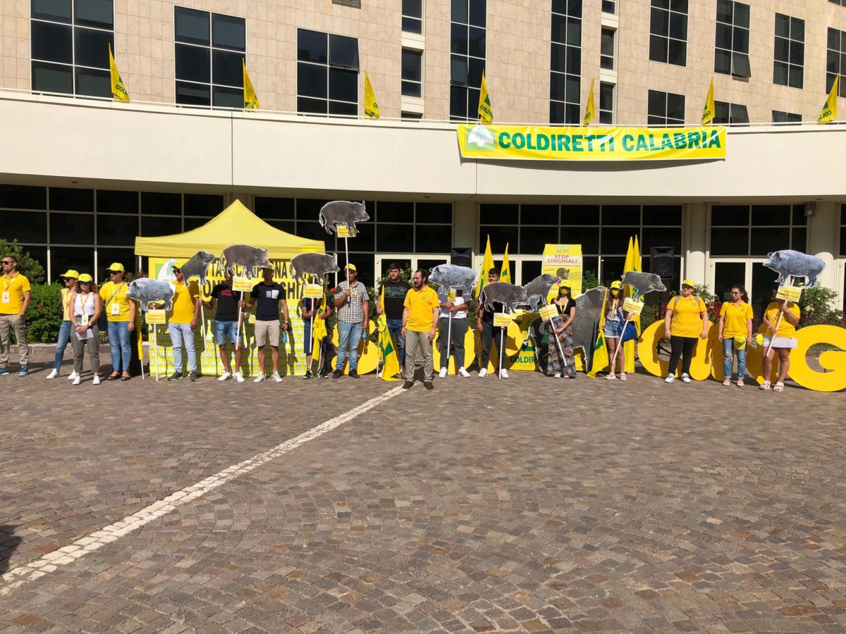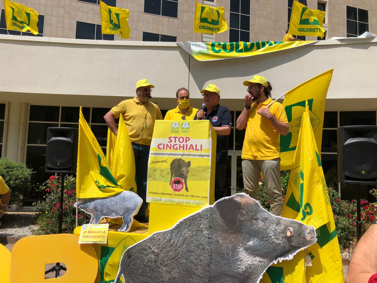 Grande coinvolgimento di agricoltori, cittadini, sindaci, amministratori, Consiglieri Regionali al Flash-mob organizzato dalla Coldiretti Calabria a Catanzaro alla Cittadella Regionale. Ben 94 amministrazioni comunali, la Città Metropolitana di Reggio Calabria e la Provincia di Cosenza,, i parchi della Sila e Aspromonte e tante altre adesioni.. Il problema dell’invasione dei cinghiali è molto grave hanno detto molti partecipanti che hanno riferito con testimonianze le esperienze drammatiche che hanno vissuto. Una delegazione della Coldiretti Calabria guidata dal presidente Franco Aceto è stata ricevuta dal Presidente Spirlì e dall’assessore Gallo che hanno espresso anche loro forti preoccupazioni per la presenza massiccia dei cinghiali sul territorio e non solo nelle aree rurali. Il presidente Spirlì ha evidenziato l’importanza fondamentale della presenza degli agricoltori per l’economia delle aree rurali interne e come l’emergenza cinghiali sia divenuta ormai un problema nazionale che, prima che sia troppo tardi, non può più essere rimandato. Ha assicurato che le proposte della Coldiretti Calabria saranno accolte, e a breve, sarà predisposta dall’Assessore Gallo la delibera proposta da Coldiretti che una volta adottata, consentirà la semplificazione per il contenimento e controllo dei cinghiali e consentirà la disciplina degli interventi di controllo dei cinghiali e il loro contenimento in ambito urbano. L’assessore Gallo ha ribadito che è necessario adeguare la normativa di settore e che l’importante tema sollevato da sempre dalla Coldiretti, è stato al centro dei lavori della commissione Politiche agricole della Conferenza delle Regioni e Province autonome dello scorso 5 luglio. E in questa sede – ha aggiunto – ho sollevato al cospetto delle altre Regioni, l’impellente questione dell’incremento incontrollato, in Calabria come nel resto del territorio nazionale, degli ungulati. Ritengo – ha continuato che la problematica del proliferare della fauna selvatica, in particolare dei cinghiali è argomento la cui trattazione è assolutamente indifferibile, a causa dei pesanti danni agli imprenditori agricoli e agli allevatori, dei pericoli per l’incolumità umana e di gravi rischi sanitari, non da ultimo il possibile ingresso, anche in Italia, della peste suina africana. Il presidente Aceto ha dato atto di questi impegni precisi da parte del Presidente Spirlì e del’Assessore Gallo. Il presidente di Coldiretti Calabria ha ribadito che il Piano di sorveglianza e prevenzione per il 2021 pubblicato dal ministero della Salute che ribadisce come i cinghiali abbiano una responsabilità fondamentale per la diffusione della Peste Suina Africana (Psa) e dunque una delle misure necessarie è la gestione numerica della popolazione di questi animali. L’azione dunque secondo il Piano – ha continuato – deve essere indirizzata alla riduzione sia numerica che spaziale attraverso le attività venatorie, le azioni di controllo della legge 157/92 articolo 19 e le azioni programmabili nella rete delle aree protette. La Coldiretti ha dato atto dell’impegno già espresso dall’assessore Gallo in Conferenza Stato-Regioni e ha sollecitato un coordinamento stretto con lo Stato per operare in modo risoluto per attuare le misure previste per il controllo e il contenimento dei cinghiali, affinché: