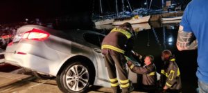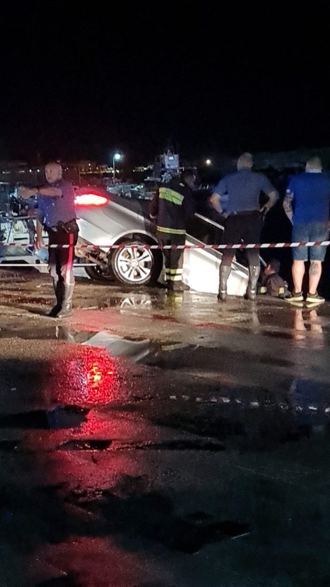 Durante il tragitto, a causa della forte pioggia, ha perso l’orientamento ed è finito oltre la banchina, fortunatamente rimasta in bilico poggiando su una barca che si trovava ormeggiata e che ha permesso ai tre occupanti di scendere da soli dall’auto e di mettersi in salvo.