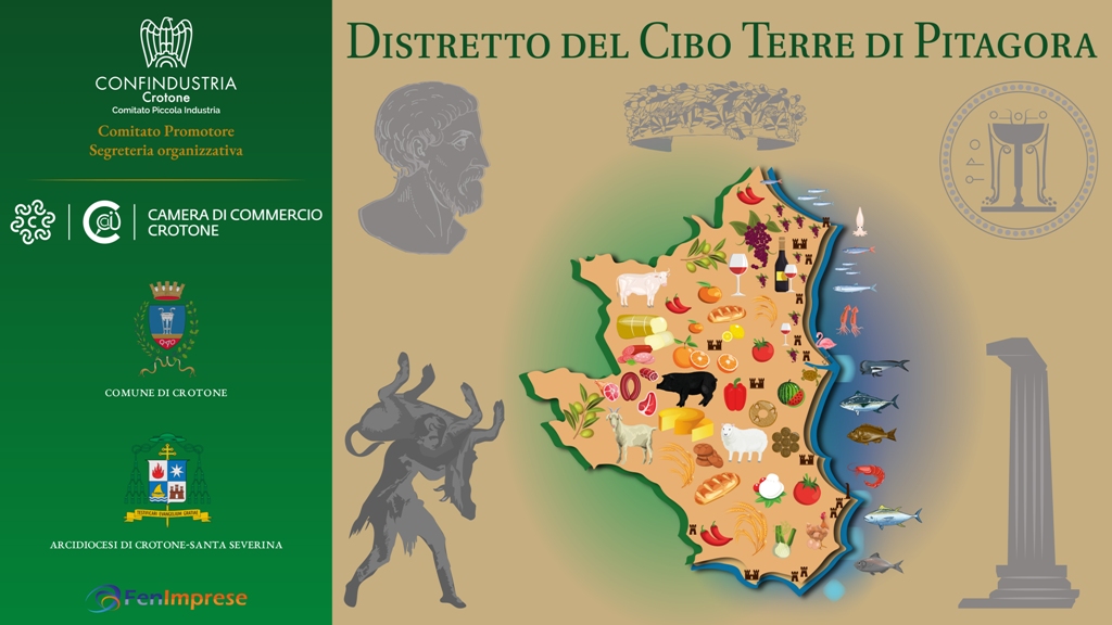 Il Distretto del Cibo “Terre di Pitagora” si propone come uno strumento fondamentale per la strategia di rilancio del territorio crotonese ed è promosso da Confindustria Crotone – Comitato di Piccola Industria – sezione Agroalimentare, in collaborazione con la locale Camera di Commercio e la Diocesi di Crotone-Santa Severina. Un modello basato su un equo e qualificato sistema di governance multilivello, strutturato sul territorio con mirate e trasparenti azioni di promozione, individuazione e rappresentanza diffusa di tutti i comparti trainanti dell’economia rurale e delle produzioni agroalimentari tipiche della provincia crotonese.
