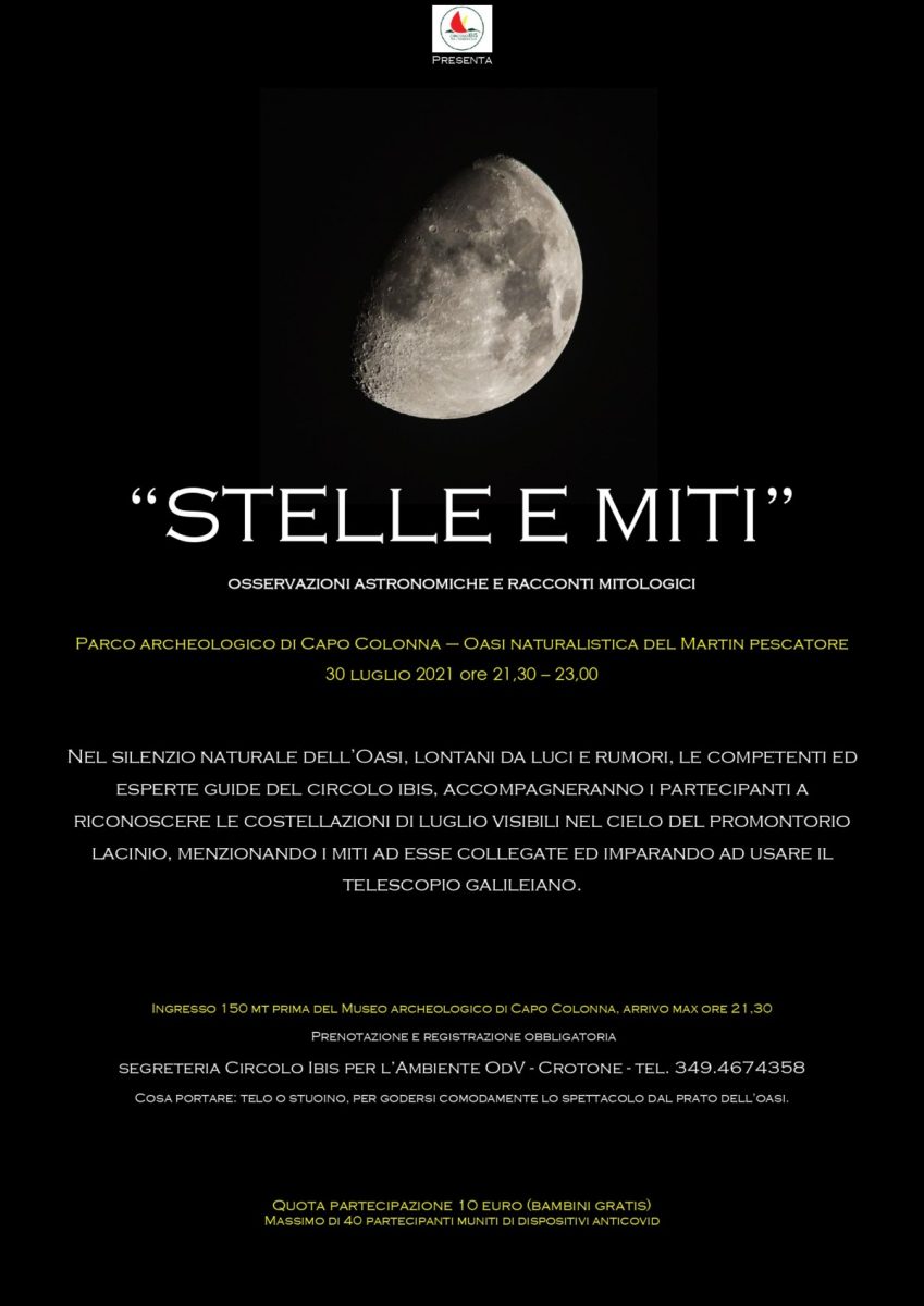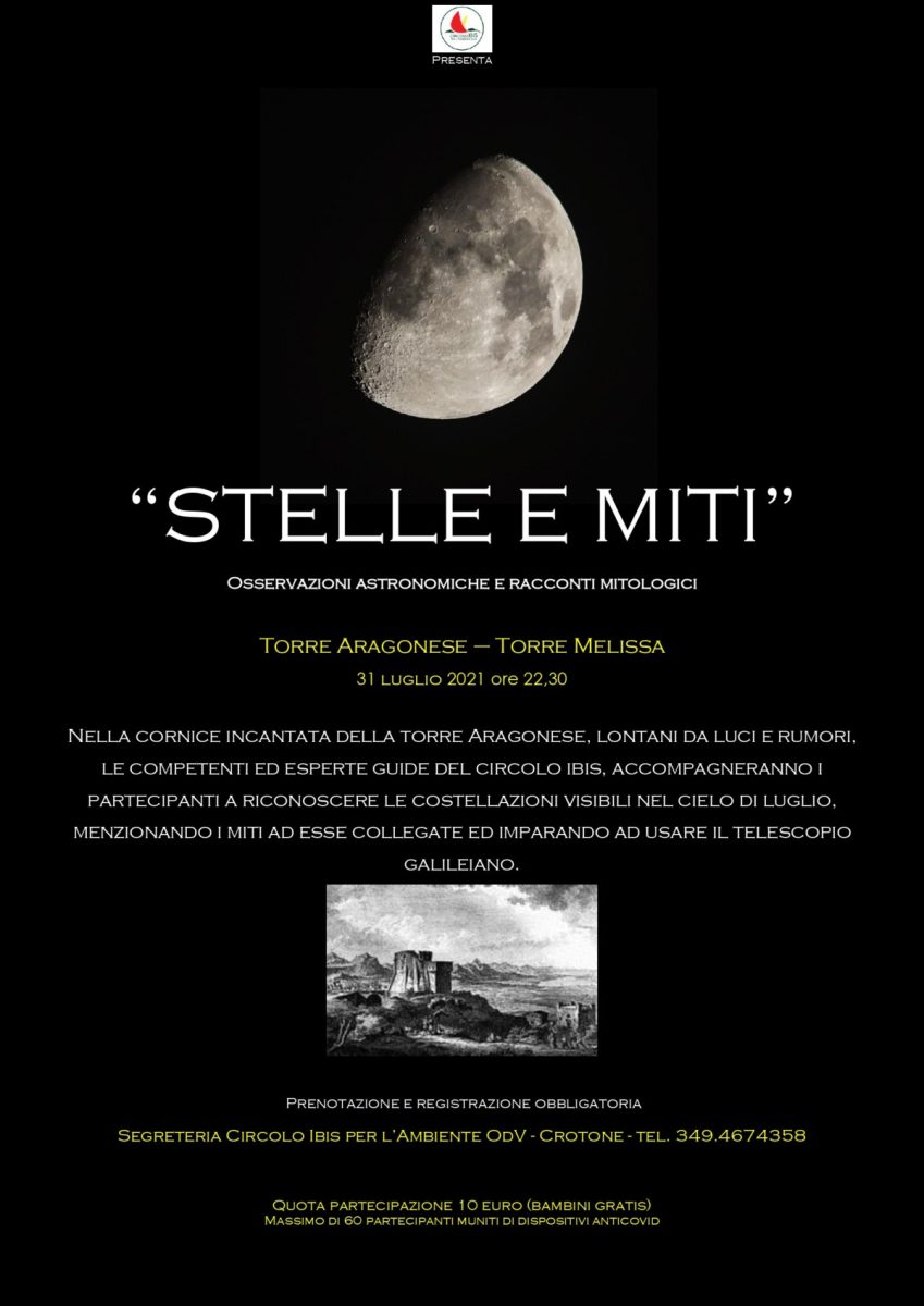 Nel silenzio naturale dell’ Oasi e della Torre Aragonese , lontano da luci e rumori le competenti ed esperte guide del Circolo Ibis, accompagneranno i partecipanti a riconoscere le costellazioni visibili nel cielo di luglio , menzionando i miti ad esse collegate ed imparando ad usare il telescopio galileiano.